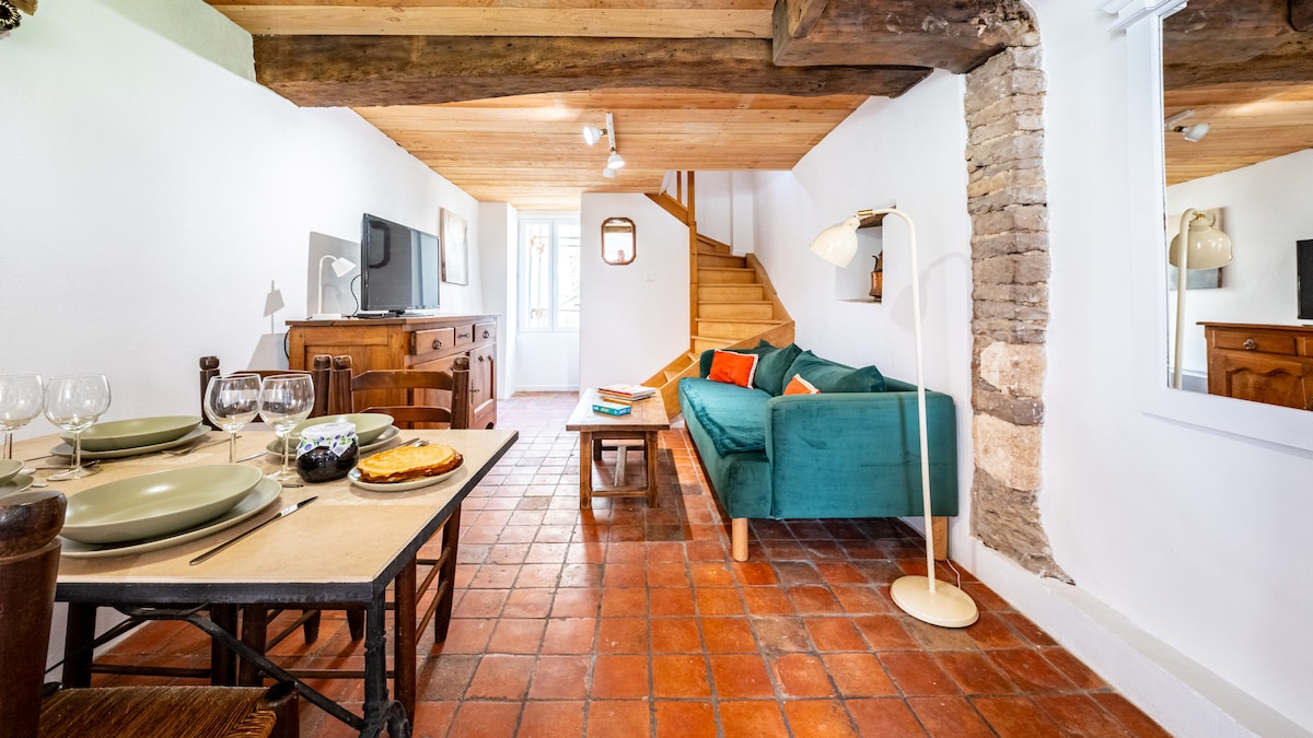 Escapa del mundo loco y quédate en esta casa de piedra en un tranquilo pueblo borgoñón en el corazón de la campiña de Auxois. Te esperan colinas verdes onduladas, senderos antiguos, aire fresco del campo, canto de pájaros y noches estrelladas. Es posible que pases la mayor parte de tu tiempo en este refugio de paz y tranquilidad y pasees un poco más allá del jardín cerrado. También puedes aventurarte y descubrir sitios de la UNESCO, pueblos en la cima de una colina, ciudades medievales y los lagos y senderos del Parque Morvan.