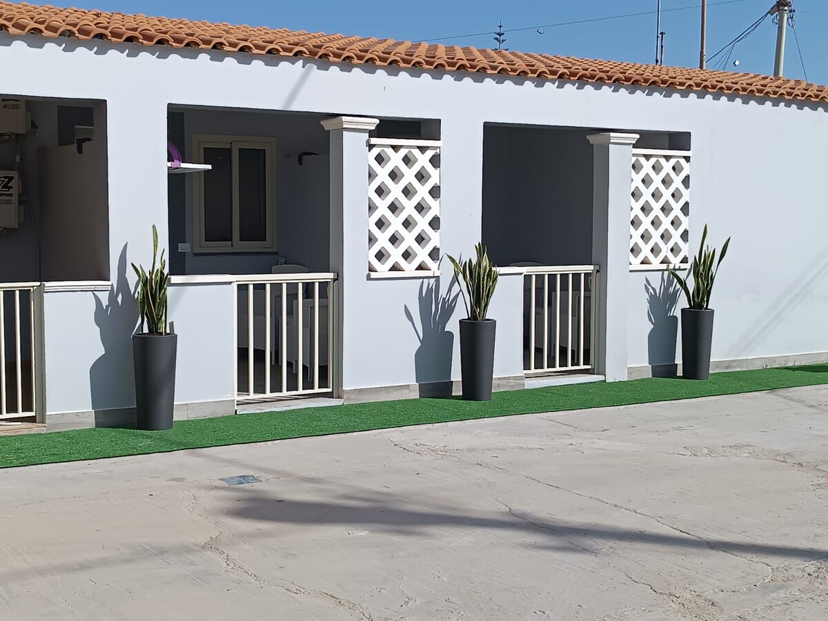 Alojamiento encantador y romántico en Lampedusa, para unas vacaciones serenas, con toda la comodidad y privacidad necesarias. Cocina completa,gran dormitorio doble, baño con ducha . Alojamiento con aire acondicionado. Ducha interior en el baño y segunda ducha al aire libre,(siempre con agua caliente) . Espacio vallado al aire libre, amueblado con mesa de comedor, sombrilla al aire libre, solo para uso exclusivo de los huéspedes de esta propiedad. Alojamiento ideal para dos.(Tercer lugar bajo solicitud).