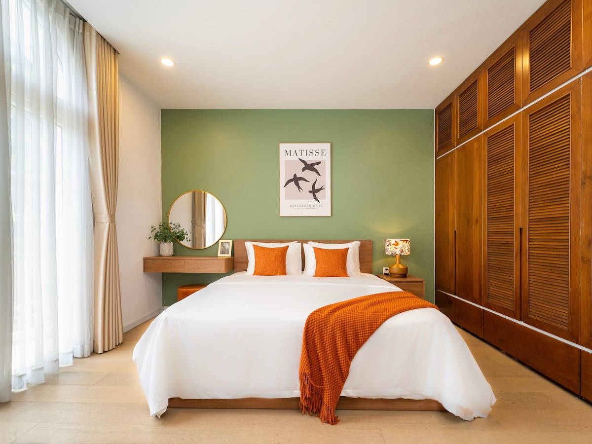 Nuestra amplia casa dúplex de 4 dormitorios en dos pisos aloja cómodamente hasta 12 huéspedes, incluidos niños. Cuenta con entrada privada, piscina en la azotea, jardín y cocina a tu disposición. Ubicada en un tranquilo vecindario del Distrito 7, en un edificio con solo otra unidad. A pocos pasos, disfruta de un parque sereno, un pintoresco lago ecológico, además de cafés, spas, supermercado y restaurantes que enriquecen tu estancia.