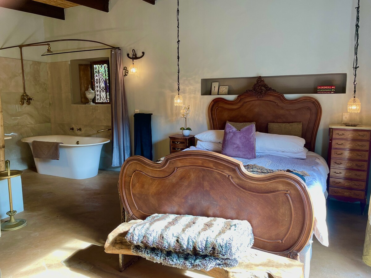 “A true home away from home” – that’s what guests say about Rosehaven. This 1900s cottage has something rare: it feels genuinely welcoming. Fresh flowers in every room, a garden alive with birdsong, that stoep where you’ll find yourself just sitting, watching the light change across roses to distant wheatfields. Wood fires crackling in winter, walking distance to excellent restaurants, and the Faerie Sanctuary literally around the corner. The garden welcomes furry family too.
