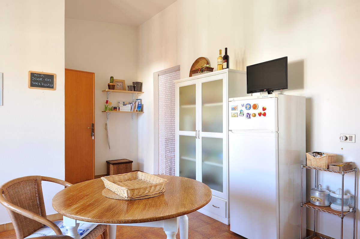 Tortolì is a quiet seaside town with lot of beautiful beaches. The apartment, very cozy, has a double bedroom , a kitchen / living room with sofa, bathroom and a veranda. Included there are 2 sun umbrella for you. Free internet and air conditioning