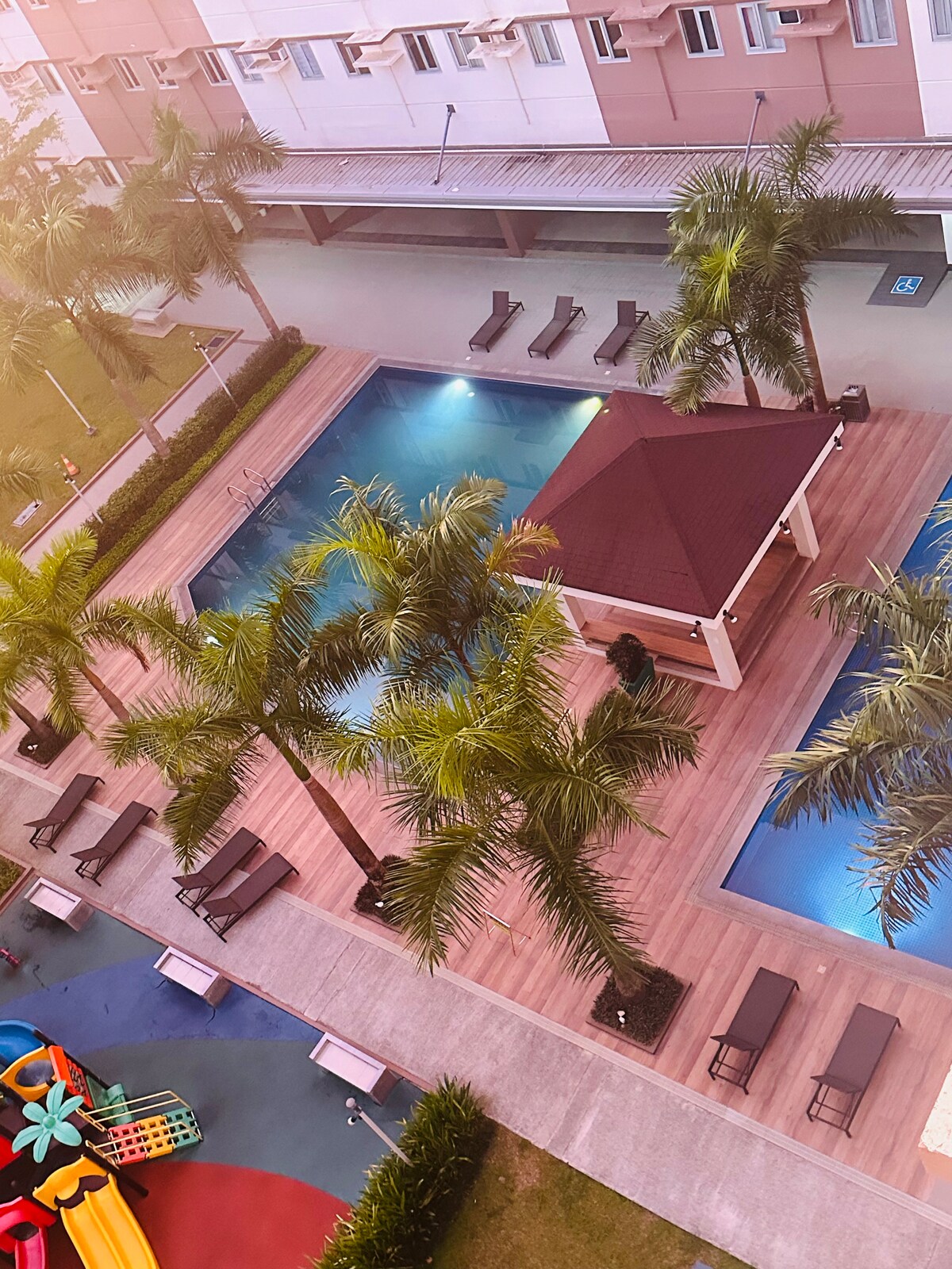 KING-SIZE BED with Fresh Bed Linens Netflix and YouTube Premium 100 Mbps WiFi 55-inch 4K UHD Android TV Sound Bar with BT Card Games and Mini Karaoke Indoor Slippers Bedside Wireless Charging Full-body Mirror Shower Heater Body Wash, Shampoo, Tissues Bath Towels Rice Cooker Induction Cooker Electric Kettle Complete Dining Wares Champagne Glasses Refrigerator Parking Fee: ₱300/night cars Free for motorcycles Additional Features: Pool View (Building D) Complimentary Coffee&Water