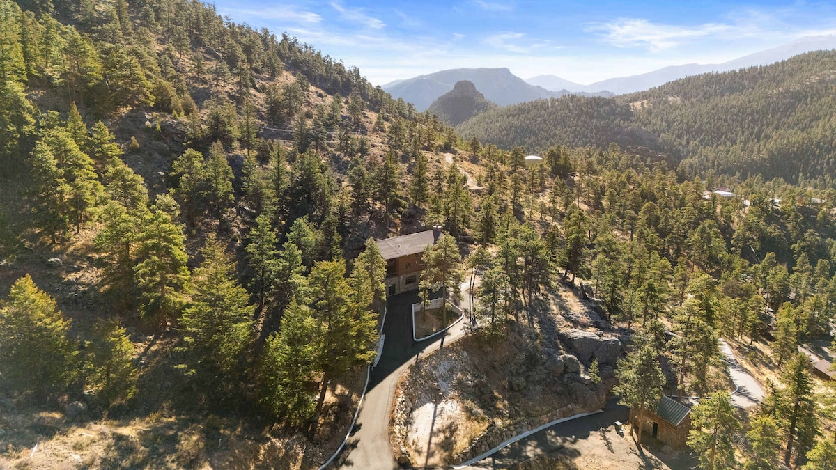 Exclusivo paraíso de montaña para la familia ubicado en 10 acres de superficie arbolada aislada que bordea el parque nacional. Tiene un pequeño estanque y un arroyo justo fuera de la casa. Se encuentra a 9200 pies de altura en la base del Longs Peak de 14,256 pies, a menos de 1 milla de la estación de guardabosques de Longs Peak en el Parque Nacional de las Montañas Rocosas y del sendero hacia Longs Peak. Puedes salir por la puerta para empezar tu caminata. Fácil acceso cercano al Bosque Nacional Roosevelt y al Área de Vida Silvestre de Indian Peaks. Increíbles oportunidades para hacer fotografías.