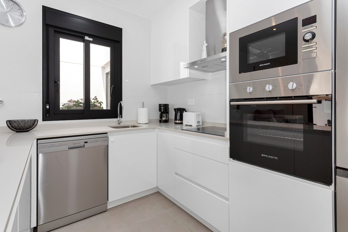 Villa de vacaciones de lujo para 6 personas con piscina privada climatizada cerca del mar. Todo lo que necesitas para unas vacaciones inolvidables en la Costa Cálida (España). 3 elegantes habitaciones con camas dobles. Dos baños de lujo. Piscina privada climatizada (9 metros) con spa y sistema de contracorriente. A poca distancia a pie y en bicicleta de la playa, el paseo marítimo y los acogedores bares y restaurantes