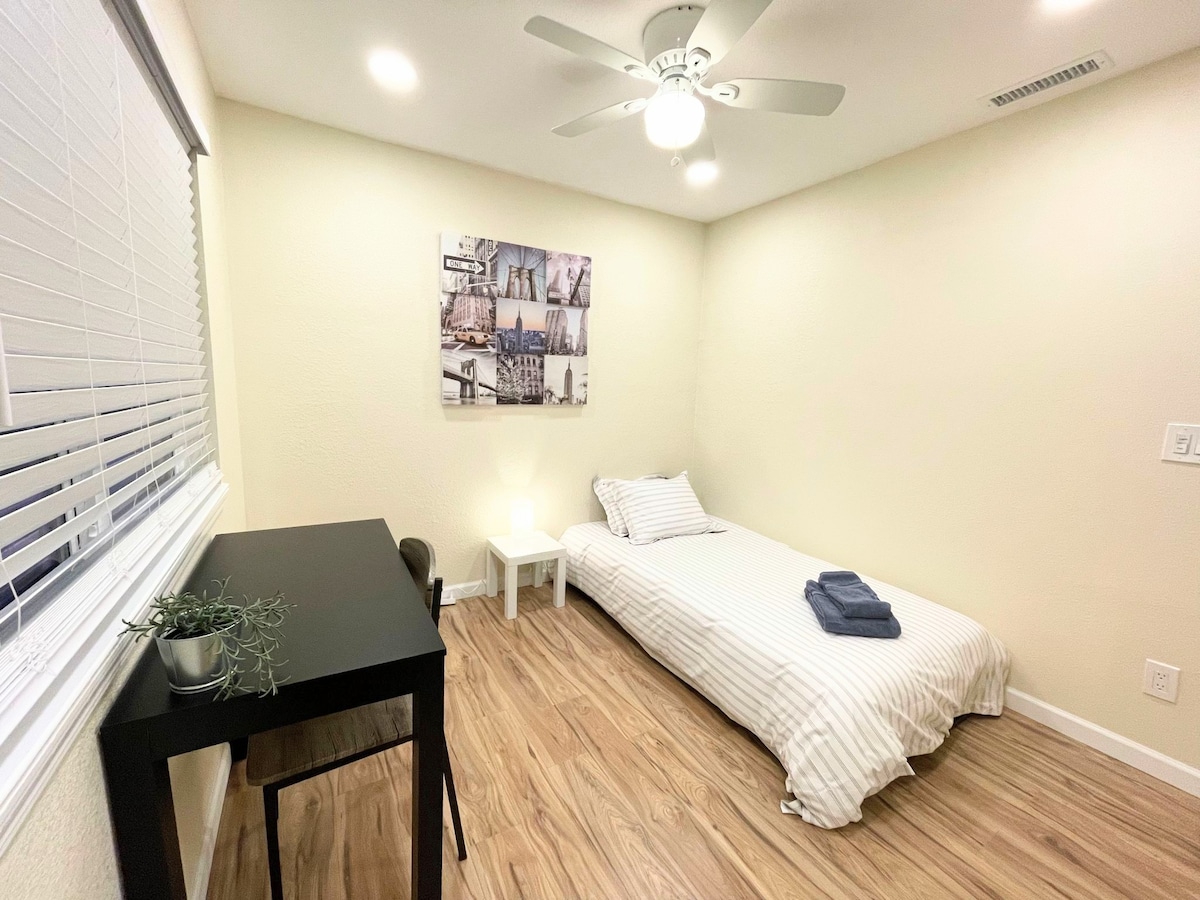 ¡Bienvenido a tu refugio perfecto en el corazón de Livermore! Esta acogedora y moderna habitación es ideal para personas que viajan solas o en pareja que buscan una estancia cómoda y elegante cerca del centro de Livermore. Con su diseño minimalista y cálidos detalles de madera, esta habitación ofrece un ambiente sereno para la relajación.