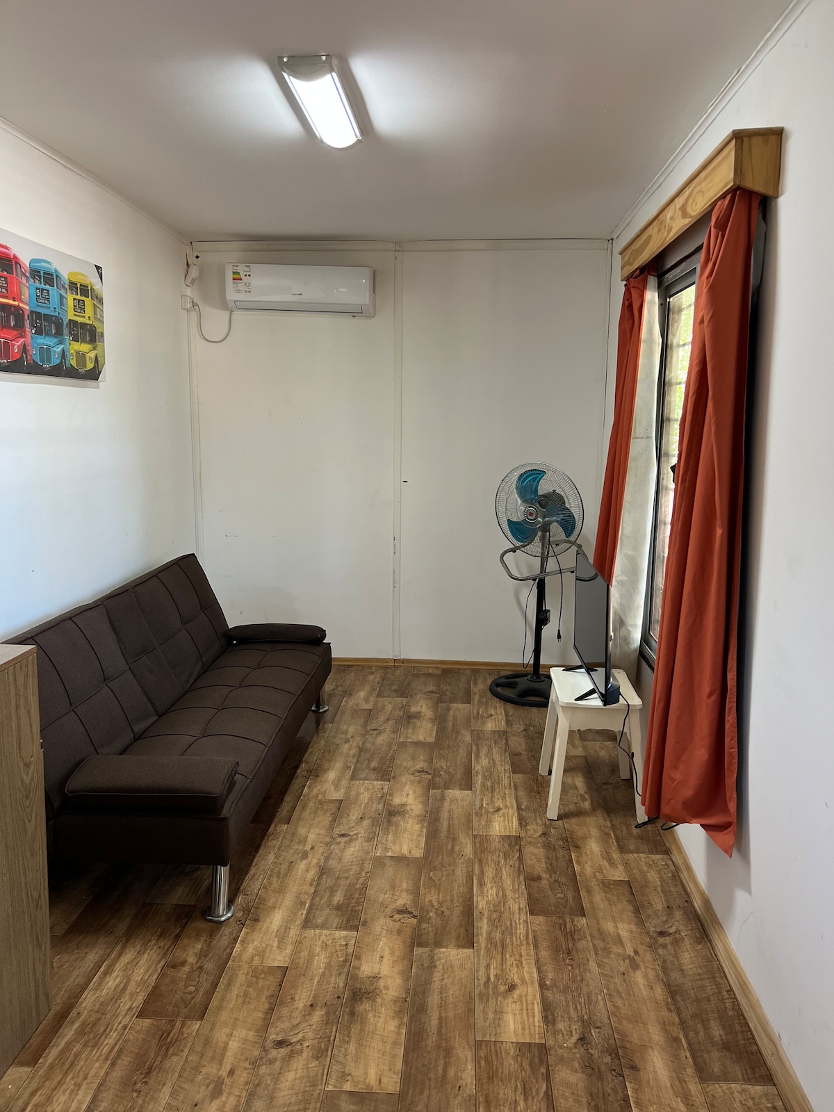 Bienvenido! Apartamento al frente de 30m2 a 300 metros del mar y 200m del centro de la ciudad y a 100 del transporte público Comodidades -Habitacion , baño, cocina, cochera y jardín - Cama Queen size extra firme -TV Led 24" con Chromecast -Wifi -Frigobar, Microondas , Cocinilla a gas, sombrillas reposeras - Ropa de cama y baño NO SE PERMITEN MASCOTAS, con excepcion de las mascotas de servicio. - La cocina es techada pero es exterior.