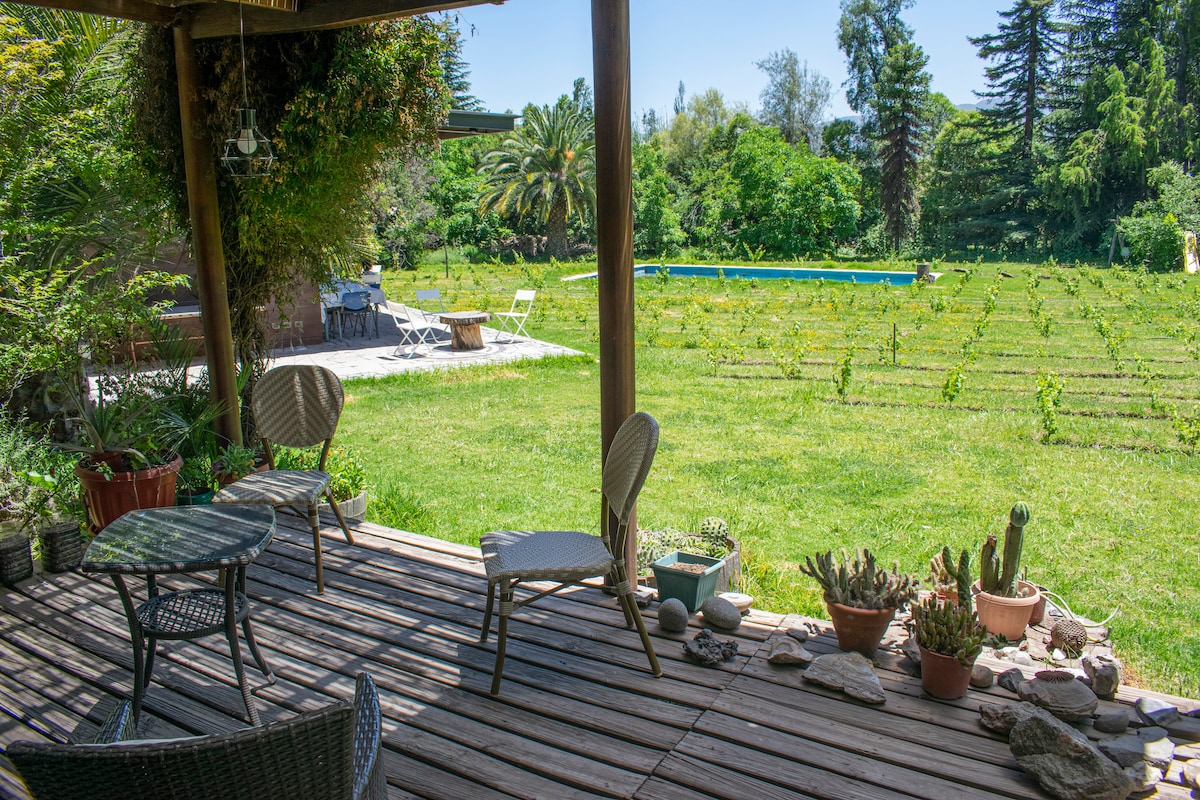 Una oportunidad única para que te desconectes de la ciudad estando a muy pocos minutos de ella y te sumerjas con todos tus sentidos en la paz y armonía a nuestro querido río Maipo. Queremos compartir contigo las maravillas de nuestro lugar increíble que conjuga nuestro compromiso ecológico y cómodas instalaciones con vistas y acceso a las montañas y río. Podrás ver cientos de especies nativas de flora y fauna que te pedimos cuidar y también podrás ver las noches mas estrelladas del Maipo.