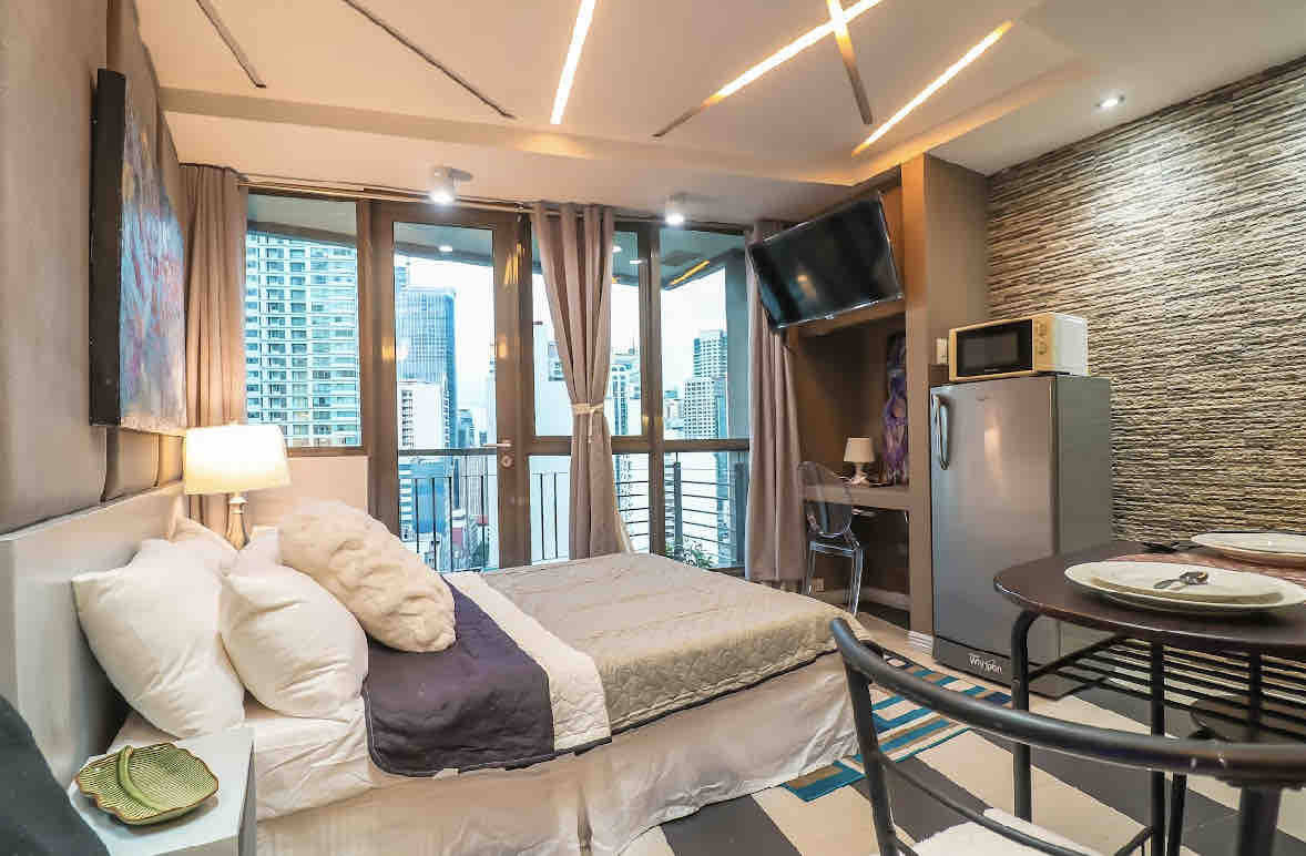 1 dormitorio, diseñador, Uptown BGC, balcón con vistas, 400 MB, lavadora