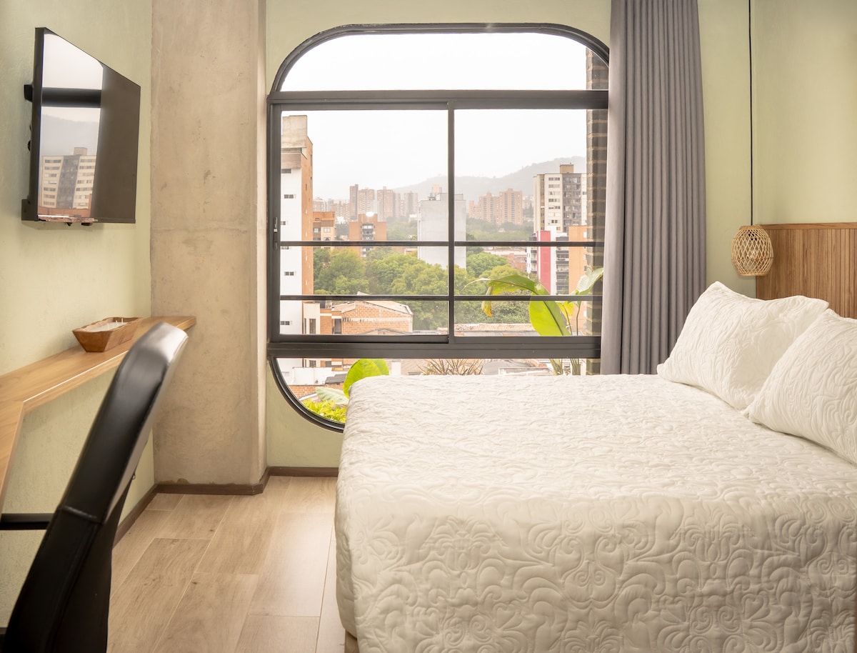En Laureles, entre casas privadas y pintorescas tiendas, la fachada de cinco pisos de Alori lo atrae con su cálido exterior de ladrillo y madera acentuado con vegetación y balcones privados. Reserva incluye 1. Desayuno continental ligero de 8 a 9 am. 2. Conserje 24/7 3. Guía Turístico Virtual Bilingüe 24/7 4. Transp. del Aeropuerto al Edificio 5. Spa (jacuzzi y baño de sol) 6. Gimnasio 7. Seguro limitado 8. Garaje privado 9. 1 pase de museo o 1 clase de baile