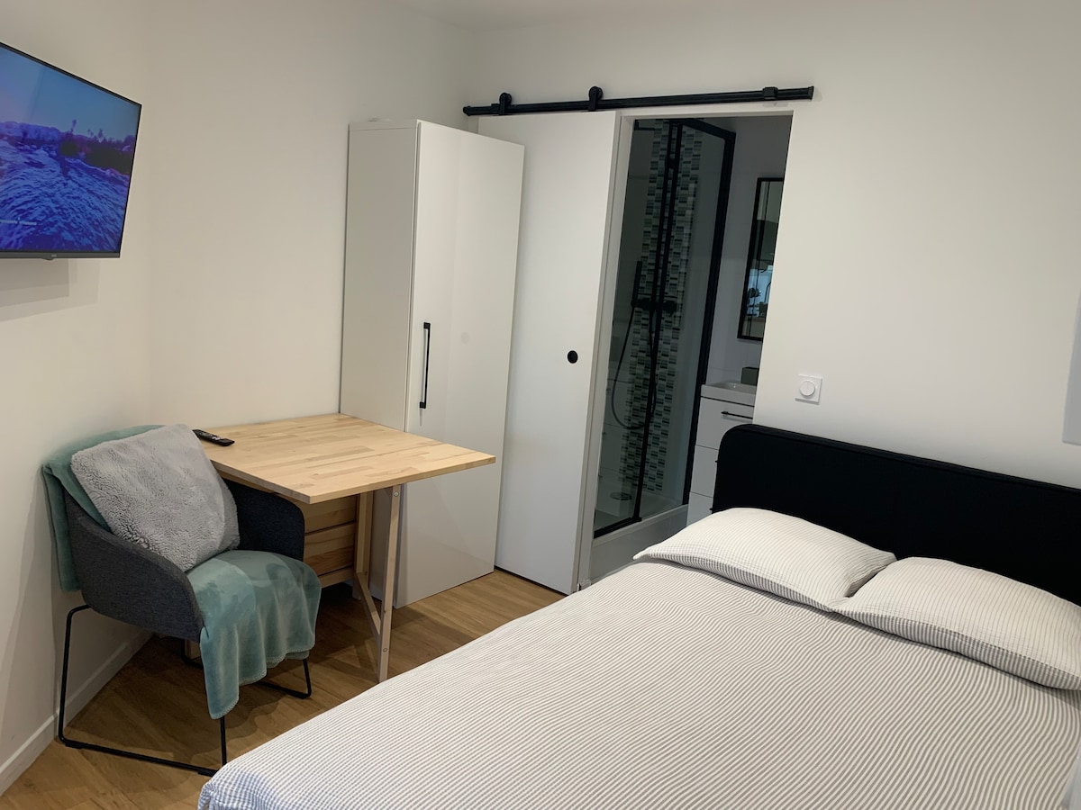 Le damos la bienvenida a nuestro acogedor estudio, idealmente situado en el corazón de Laval, a un paso de los principales puntos de interés. Tanto si viaja por negocios como si lo hace por cultura, este alojamiento es perfecto para ofrecerle comodidad y practicidad. Se encontrará en una zona tranquila en el primer piso de una residencia segura. Hay plazas de aparcamiento gratuitas disponibles dentro y alrededor de la residencia.
