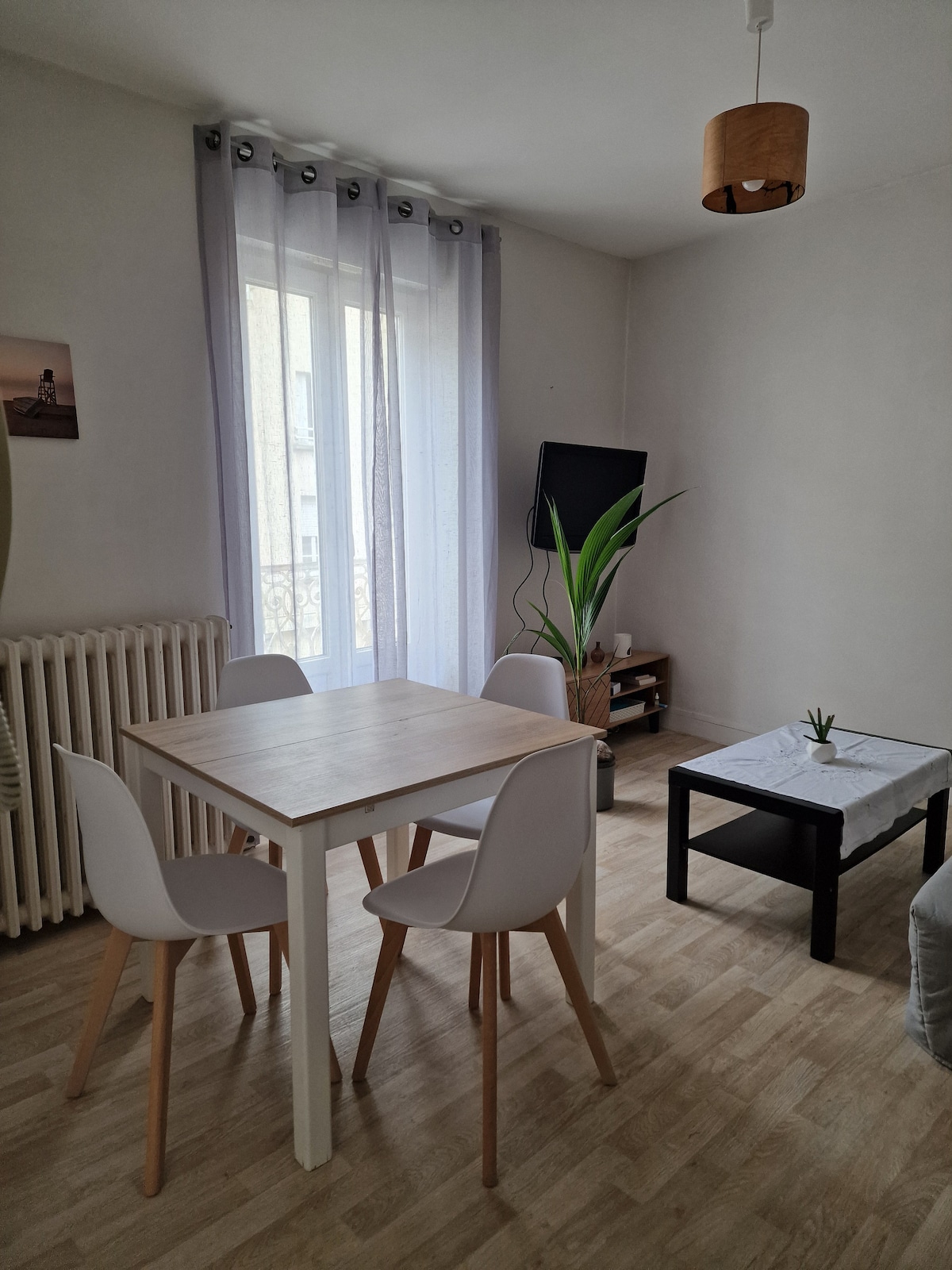 Disfrute de un apartamento en el corazón de Laval, en una calle animada pero tranquila al lado del patio. Situado cerca de todos los comercios, de la estación de tren (a 15 minutos a pie) y del centro histórico. Se alojará en nuestro alojamiento con todas las comodidades, que incluye una cocina equipada, una sala de estar con una zona de noche acogedora. Atención a las personas altas, el techo podría hacerles cosquillas en el pelo (2 m de altura del techo).
