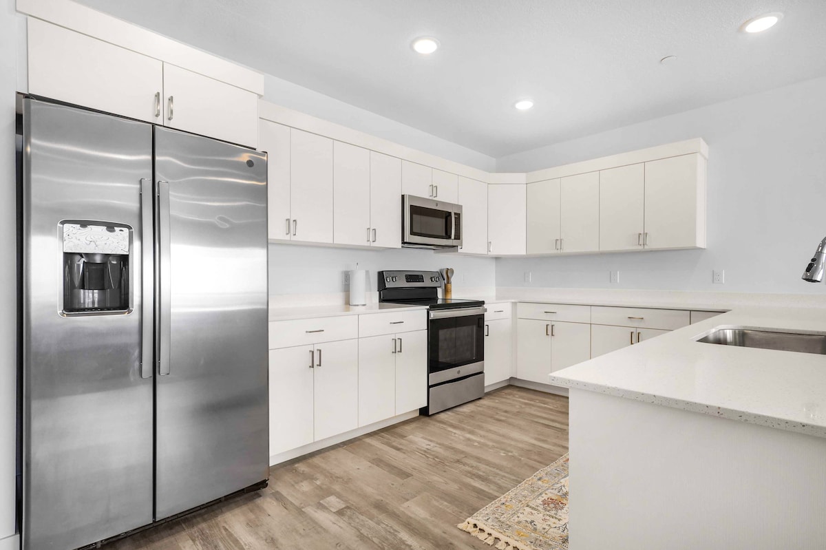 Tu familia estará cerca de todo cuando te hospedes en esta joya céntrica. A menos de 3 millas de hermosas rutas de senderismo, y aún más cerca de restaurantes y tiendas de la ciudad. O a 20 millas de estaciones de esquí de clase mundial y embalses impresionantes. O quédate y disfruta de las comodidades del hogar, que incluyen una gran cocina con una enorme isla de cuarzo y encimeras, hermosos gabinetes y electrodomésticos completos. Tu propio estacionamiento privado, entrada y lavadora y secadora.