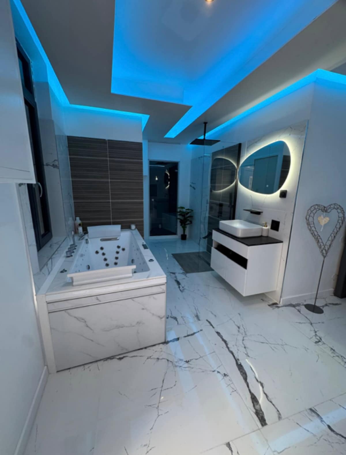 Estudio de 30 m² dedicado al bienestar, con spa privado: balneario de alta gama, baño turco a medida y ducha a ras de suelo retroiluminada con pantalla digital. Cama king size a medida con estación meteorológica, enchufes integrados y asiento móvil. Asiento de masaje Techo LED personalizable, proyector Full HD 1080p frente a la cama. 📍Situado en Toulouges A 10 minutos en automóvil del centro de la ciudad de Perpiñán A 20 minutos de la playa más cercana 🅿️ Estacionamiento gratuito en el lugar
