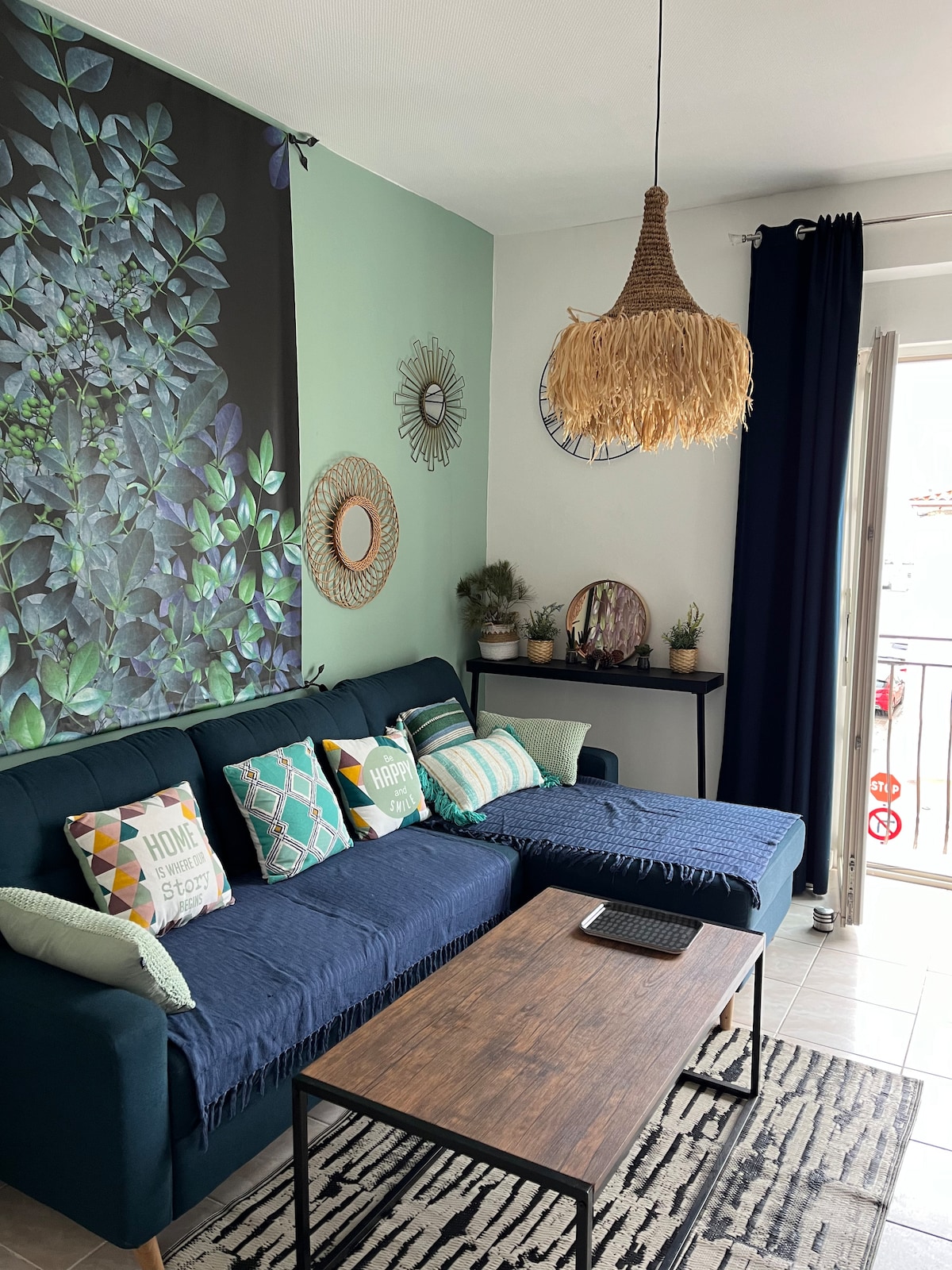 Dos ambientes con terraza exterior. Situado a 500 metros de la playa y a 700 metros del centro de la playa (tiendas, mercados...) y el campo de golf muy cerca. Disfrutará de un apartamento en una villa de tres apartamentos con terraza individual, una sala de estar abierta a la cocina con sofá (1m40X1m90) , TV, todo lo necesario para cocinar, en la planta superior un altillo con una cama individual (80cmX190cm), baño con ducha con lavadora y un dormitorio con una cama para 2 personas (1m40X1m90) y TV.