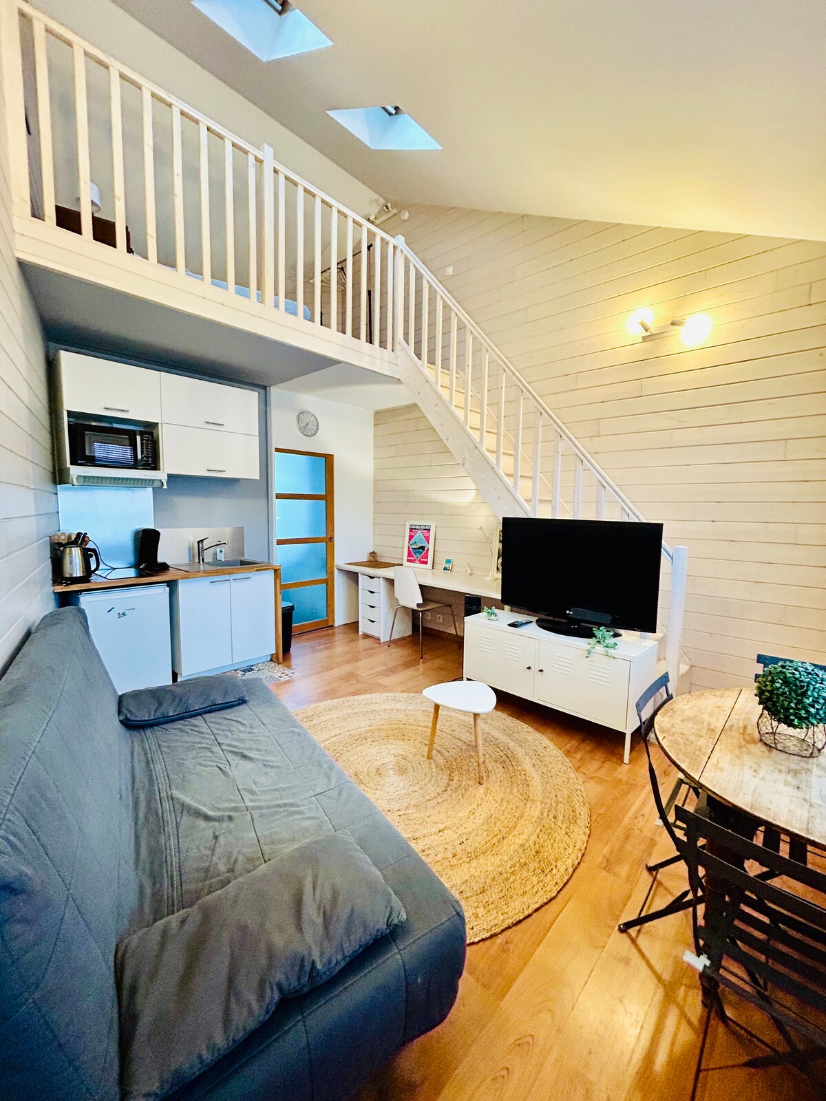 Disfrute de un alojamiento elegante y céntrico en el corazón de La Rochelle. Situado a 5 minutos andando del mercado central, cerca del aparcamiento parcialmente gratuito de la explanada de los parques, a 25 minutos andando de la estación de tren y de la playa de la Concurrencia. Este estudio de dos niveles, renovado en 2024, ha sido diseñado con buen gusto y delicadeza para una acogida óptima. He puesto toda mi experiencia como viajera para ofrecerle un alojamiento acogedor, funcional y refinado.