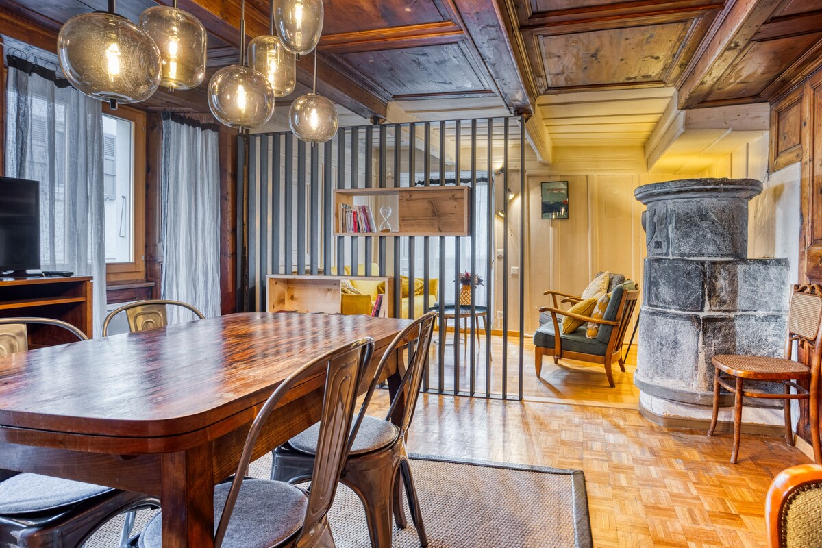 Encantador chalet antiguo de madera y piedra con vistas al Mont Blanc