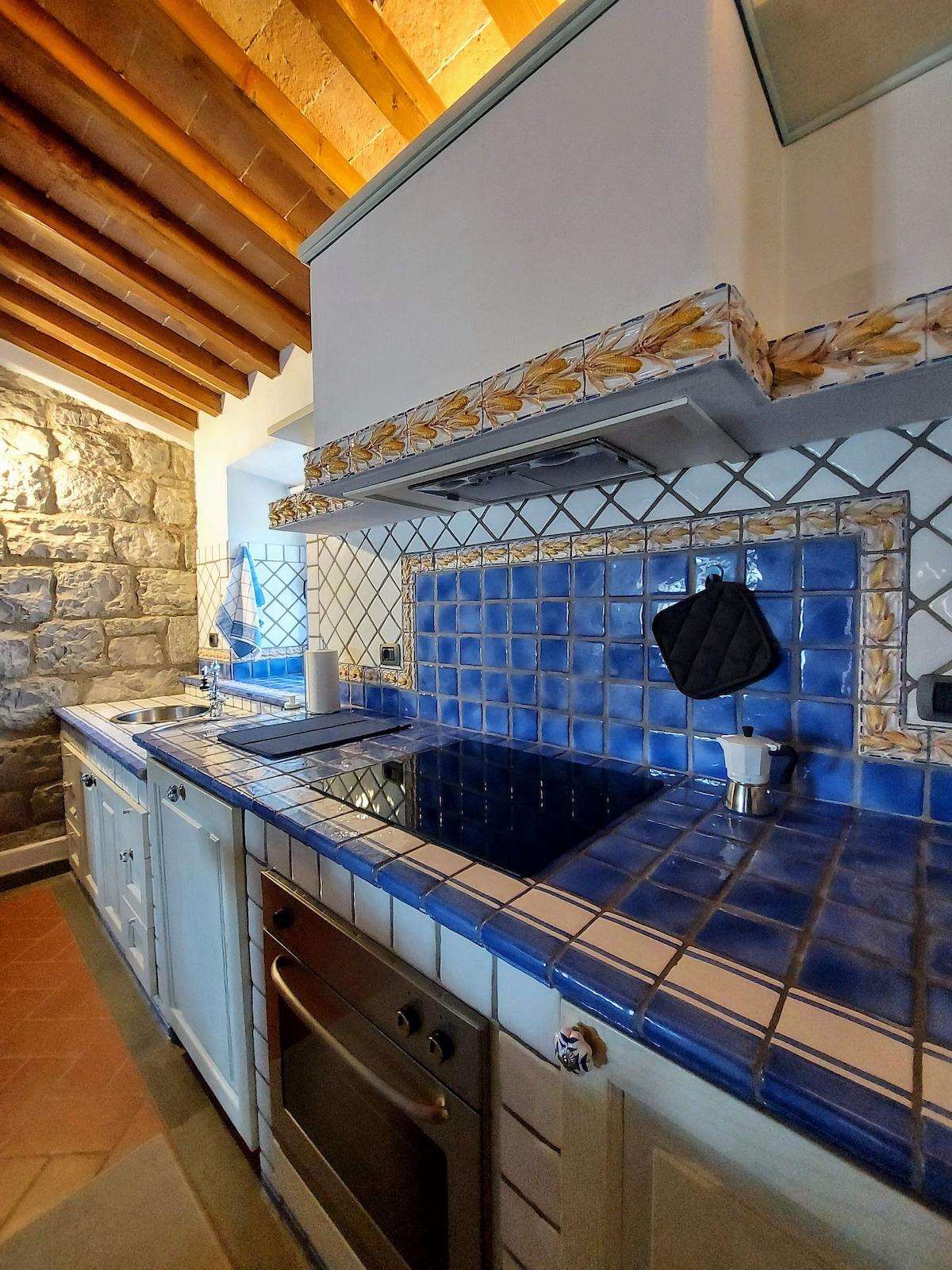 Apartamento de lujo en antigua casa de campo recién reformado, que consta de salón-cocina, dos dormitorios y dos baños, aire acondicionado, luminoso y amueblado con muebles claros lineales y cálidos, techos con vigas de madera y claraboyas. Adopción de un sistema óptimo de limpieza, desinfección y ventilación, exposición de todas las habitaciones a LUZ DE LÁMPARA DE RAYOS UV para aumentar la desinfección y pausa de 48 horas entre una estancia y otra, gel antiséptico y productos desinfectantes para los huéspedes.