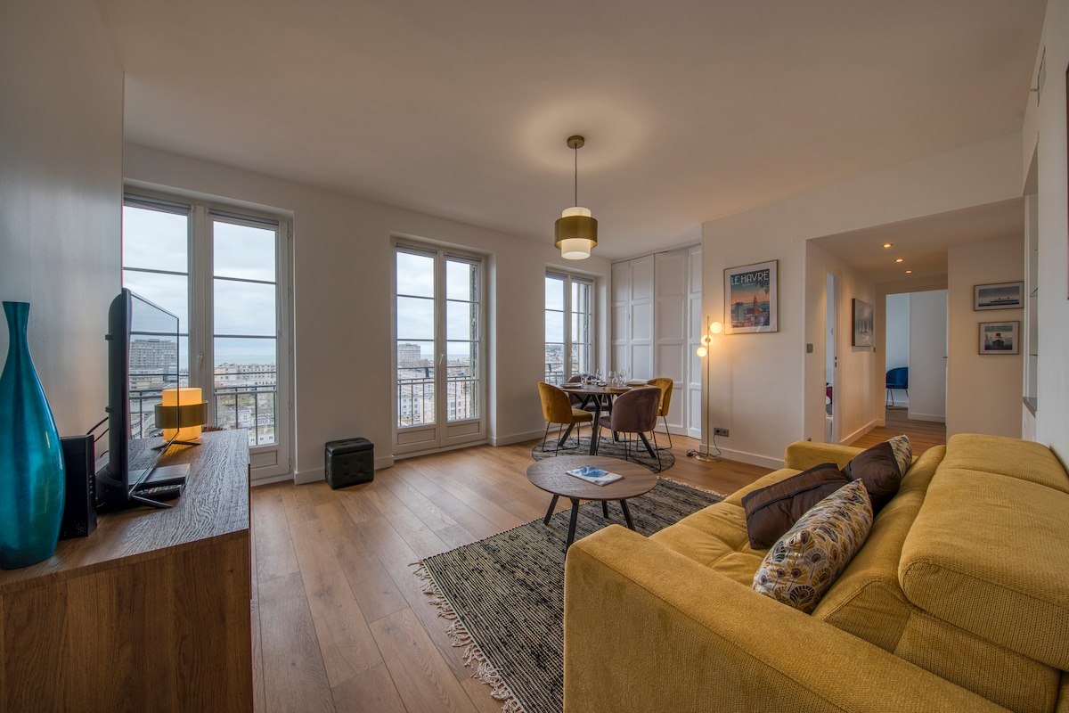Playa a 3 minutos a pie. Alojamiento ideal para su estancia en Le Havre, profesional o de placer: luminoso apartamento de 55 m², balcón completo al oeste, cuarta planta sin ascensor Sábanas, toallas y cama hecha a la llegada, wifi de fibra, cocina equipada, dormitorio (cama de 160) escritorio/televisión grande, cuarto de baño con ducha a ras de suelo bañera doble lavabos y WC. Aparcamiento independiente. Les Halles 5 min: todos los comercios y restauración. Super U, panadería y prensa 1 min Autobús, tranvía y patinetes eléctricos cerca. Tranvía directo a la playa/estación: 7 min.