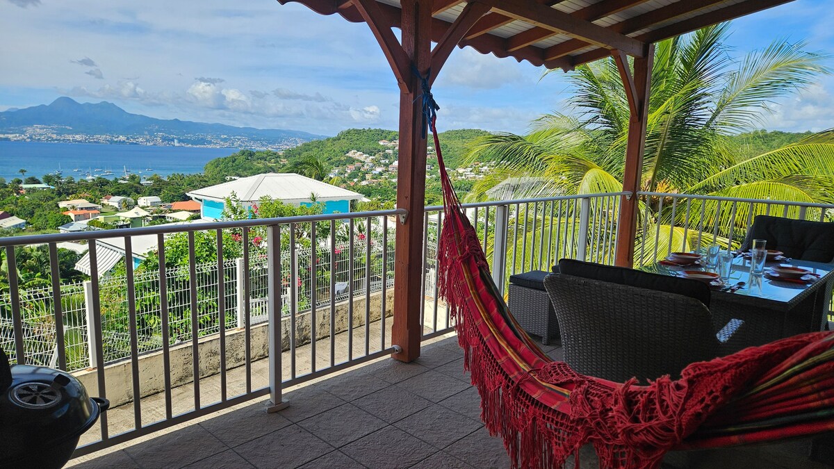 Este alojamiento tranquilo ofrece una estancia relajante para toda la familia. Situado frente a la bahía de Fort-de-France, este apartamento ofrece un ambiente acogedor, con todas las comodidades. Wifi... 1 gran terraza equipada con una hamaca y un hermoso salón comedor con vistas panorámicas de la bahía, 1 dormitorio equipado con una cama doble, 1 armario empotrado, 1 tocador y su sillón, 1 sala de estar con sofá cama con capacidad para 2 personas más, 1 cocina compacta y bien equipada. Cama separada para 2 personas adicionales