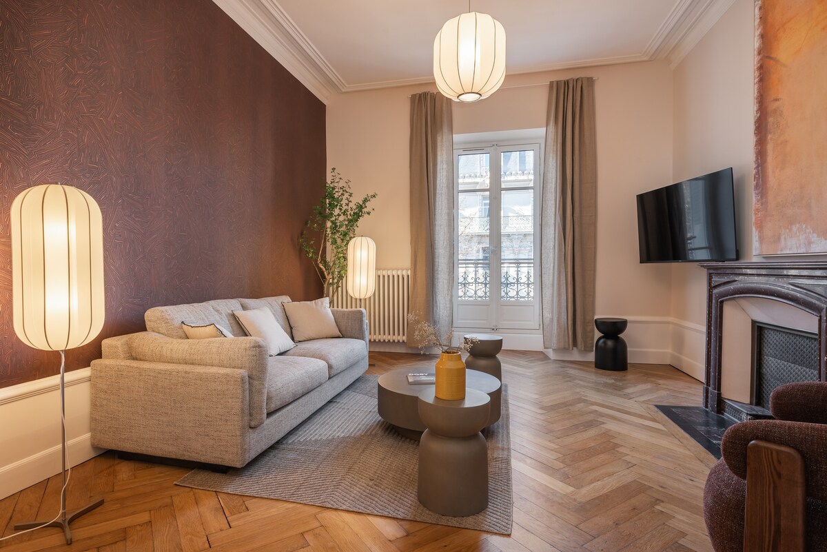 ¡Prueba la elegancia de este alojamiento excepcional! Completamente renovado por un arquitecto con materiales de alta calidad, este hermoso departamento de 90 m2 está compuesto por una sala de estar (sala de estar, cocina abierta), 2 dormitorios grandes, un vestidor, un baño de mármol con ducha a ras de suelo y 2 balcones amueblados. Beneficios: - aire acondicionado - Inalámbrico. - lavadora - lavavajillas - ropa de cama y toallas incluidas. ¡Ideal para disfrutar plenamente de Grenoble y sus alrededores!
