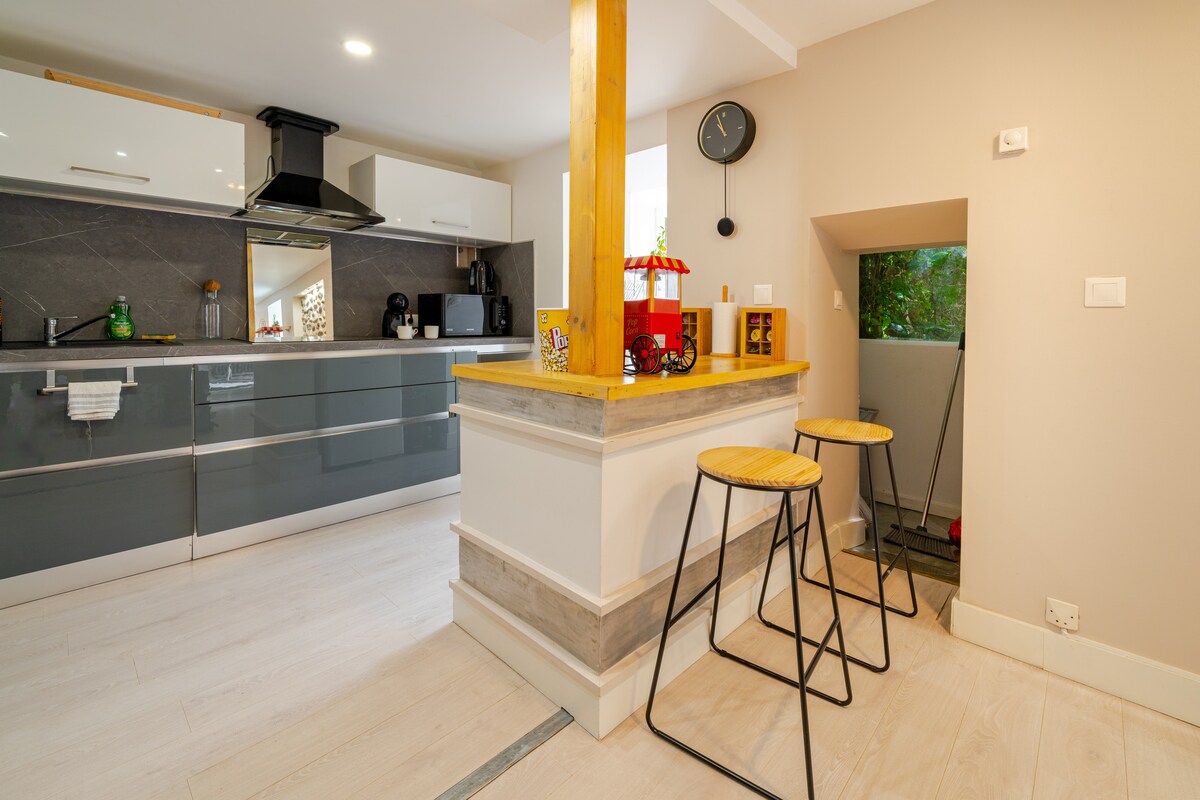 🌿 Apartamento de dos habitaciones de diseño con terraza – absoluta tranquilidad a las puertas de Grenoble Disfrute de un apartamento de 2 habitaciones de 35 m² totalmente renovado en la planta baja con jardín de una villa en el corazón del casco antiguo de Seyssins. Entorno tranquilo, terraza privada, aire acondicionado y estacionamiento seguro. Ideal para estadías profesionales o escapadas en la naturaleza, al pie de Vercors. A solo 15 minutos del centro de Grenoble. ✨ Ropa de cama cómoda, wifi rápido, cocina equipada. Ideal para viajeros exigentes que buscan tranquilidad y calidad.