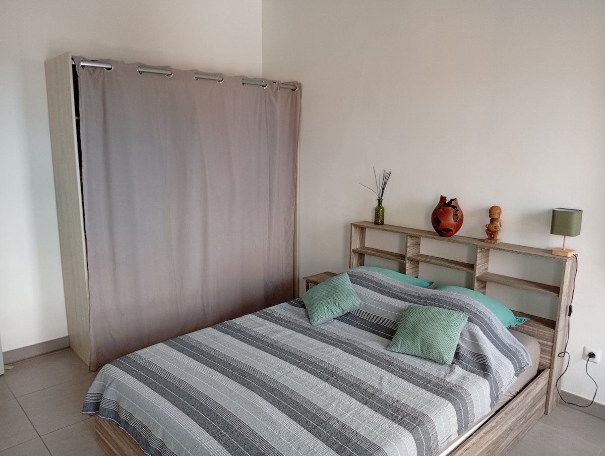 Nous vous proposons notre agréable studio avec sa terrasse ombragée, indépendant de notre maison où nous vivons. Niché dans notre grand jardin, avec sa décoration moderne et son ambiance chaleureuse, vous y trouverez tout le confort pour un séjour sur l'île intense. Situé dans les bas de la Possession à 1km du départ des 4X4 de la Rivière des galets qui vous emmènent dans Mafate, il est également à équidistance des plages de St Gilles ou de Saint Denis que vous pourrez rejoindre en 20 mn.
