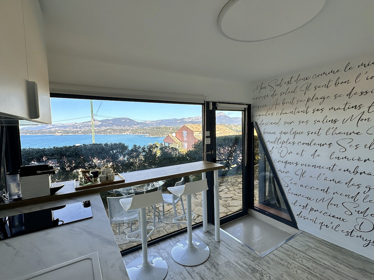 Mon logement de 33m2 est proche de la mer.Une minute à pied.Vous l' apprécierez car il est entièrement refait à neuf, pour sa situation, sa vue sur la mer, sa terrasse et un parking dans la résidence. Il a un équipement complet (Climatisation,WIFI ,four, plancha,micro onde,machine à laver. senseo cafetière etc. ). Il possède également une petite chambre avec un lit 140 . Une cave à disposition ainsi qu'un local à vélo. Visite des îles d'Hyères (Porquerolles, Port-Cros) au départ de Hyères.