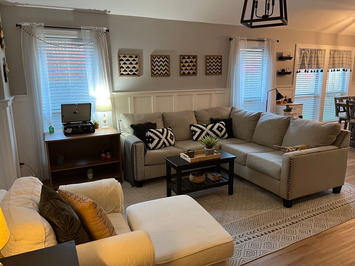 Nuestro acogedor refugio ofrece lujosas comodidades: una bañera profunda, aire acondicionado nuevo, WiFi de alta velocidad, un televisor Roku de 70 pulgadas, una cocina de ensueño para chefs y una oficina independiente. La casa está perfectamente situada, a poca distancia en auto desde la I-45, por lo que puedes viajar rápida y fácilmente hacia el norte a Houston o al sur hasta Galveston. El barrio ofrece parques, estanques, senderos para caminar y un parque para perros. Este es el lugar perfecto para los cruceros que salen de Galveston o los viajeros que desean experimentar el área metropolitana de Houston.