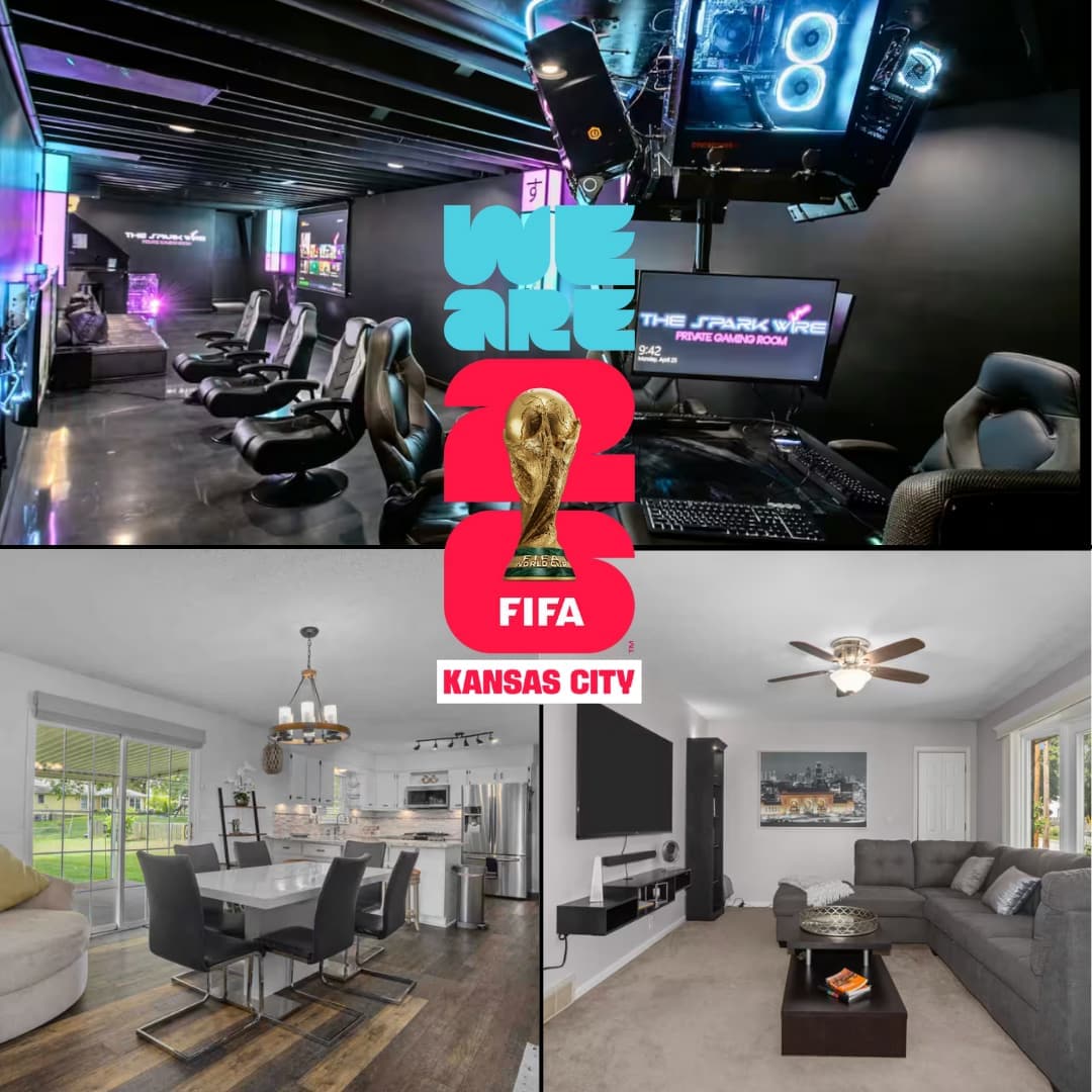 ¡Esta espaciosa casa tiene tres niveles para disfrutar y repartirse! No te quedarás sin espacio ni de las cosas que hacer aquí. Las habitaciones son amplias con varias habitaciones adicionales. Baños y cocina actualizados, patio, pickleball, baloncesto, minigolf de 7 hoyos, hoyo de maíz, sala de juegos y toneladas de asientos en todas partes, ¡perfecto para una escapada familiar o grupal! Increíble ubicación al final de la calle del Speedway con vistas al campo de golf Sunflower Hills y a solo dos millas de las Leyendas, Sporting KC y mucho más.