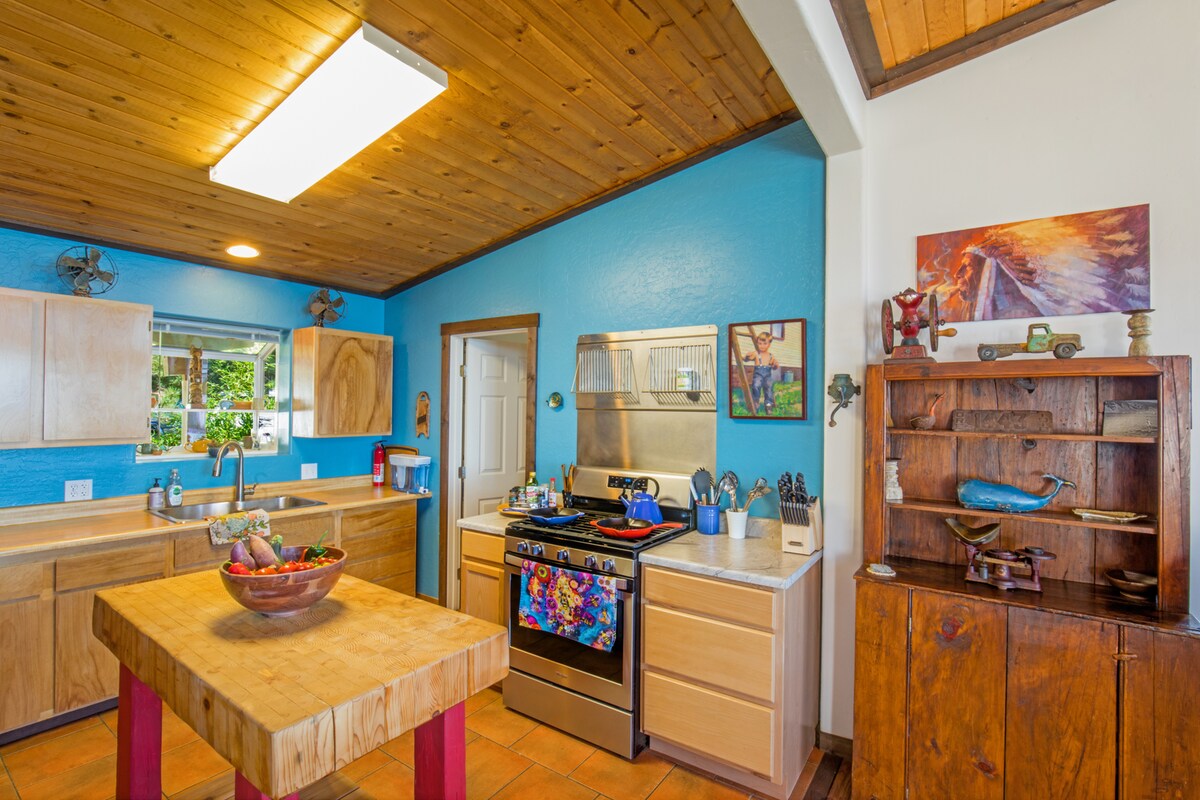 Welcome to Melody Mountain, a cozy forest cabin retreat perched 1,000 feet above Benbow’s Lost Coast. Tucked deep in redwood country, this private haven offers a jacuzzi under star-filled skies, amazing sunsets on the patio with quail, turkey, and deer, and the nighttime hush of crickets and frogs. Inside, enjoy the wood stove, fast Wi-Fi, and charming artistic touches throughout. Whimsical, dog-friendly, and off the beaten path—this is your place to reconnect with nature and yourself.