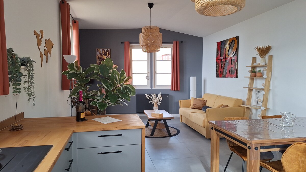 Découvrez notre loft unique au cœur du Beaujolais, dans une ancienne maison en pierre. Alliant charme authentique et design moderne, cet appartement de 2 chambres peut accueillir confortablement jusqu'à 6 voyageurs. Idéalement situé face à la gare, il est parfait pour une escapade, avec une cuisine équipée, un espace bureau sur mezzanine et une connexion Wi-Fi fibre. Situé juste en face de la gare et à 7 minutes de l'autoroute A89, il offre un accès facile à Lyon et au cœur du Beaujolais.