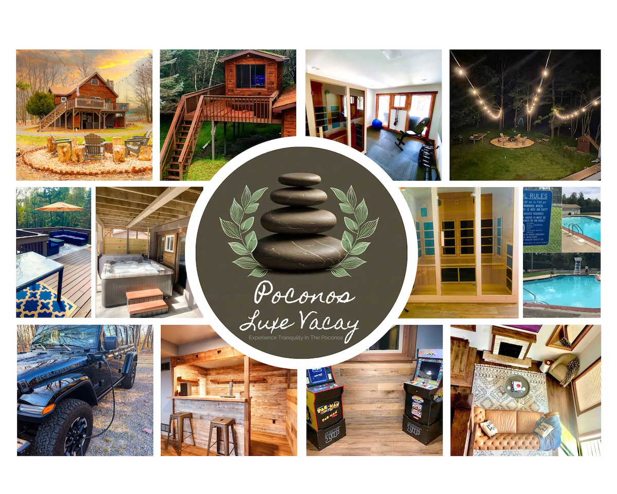 Latitude Adjustment es un refugio único en Pocono Lake, diseñado para aquellos que buscan la combinación perfecta de relajación y exploración local. Equipado con una increíble sauna de vapor al aire libre para 4 personas, una bañera de hidromasaje privada para 7 personas con cascada, altavoces Bluetooth y luces LED, una enorme sala de juegos con TV de 65 pulgadas, estufa de leña, una gran zona de entretenimiento al aire libre con parrilla, chimenea, cabaña para invitados y comedor. Ubicado en una hermosa comunidad de Arrowhead Lake, rica en servicios, ¡a 1 minuto a pie del lago!