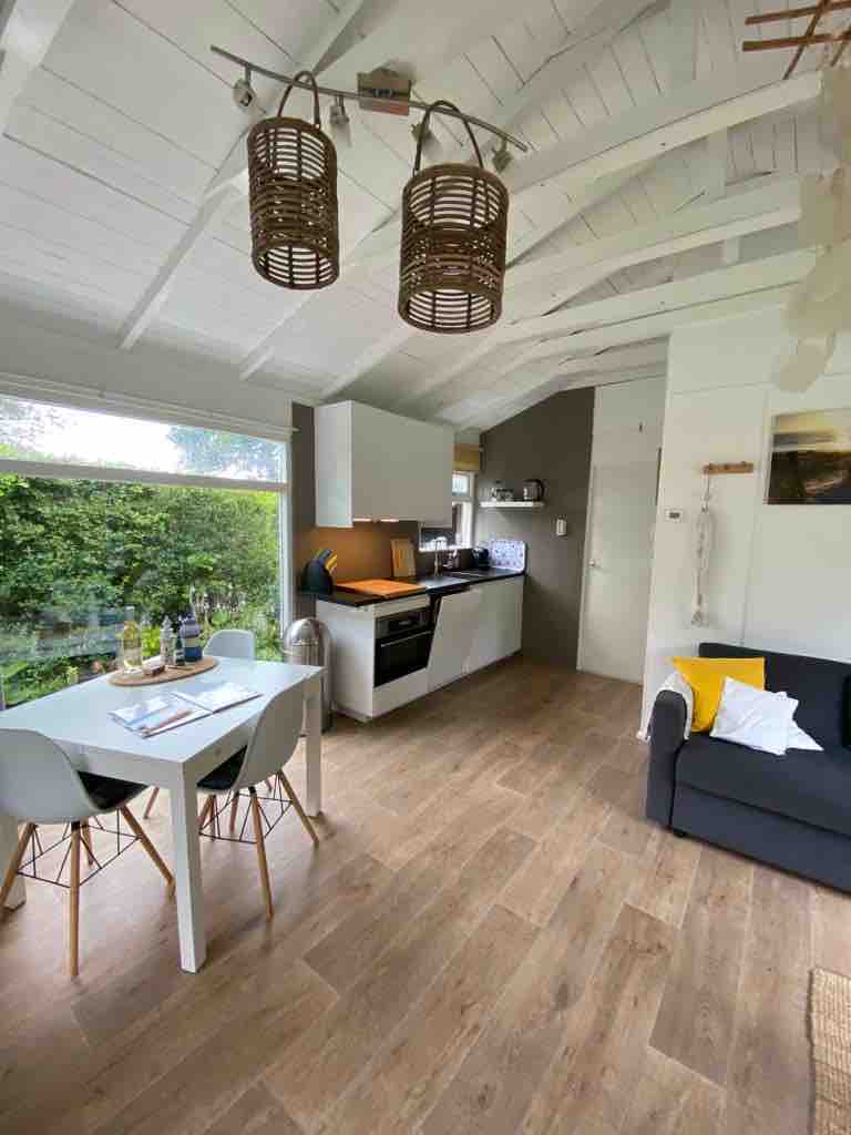 Near Amsterdam, you will find this unique private house surrounded by characteristic Dutch water landscape. The house is completely corona proof. The house has two floors, downstairs the living room with a modern kitchen with terrace and an upstairs with the bedroom with a freestanding bath. The spectacular view of the water immidiatly transforms the mind after a visit in Amsterdam. From this quiet area it is only 10 minutes by public transport to the Central Station in Amsterdam.