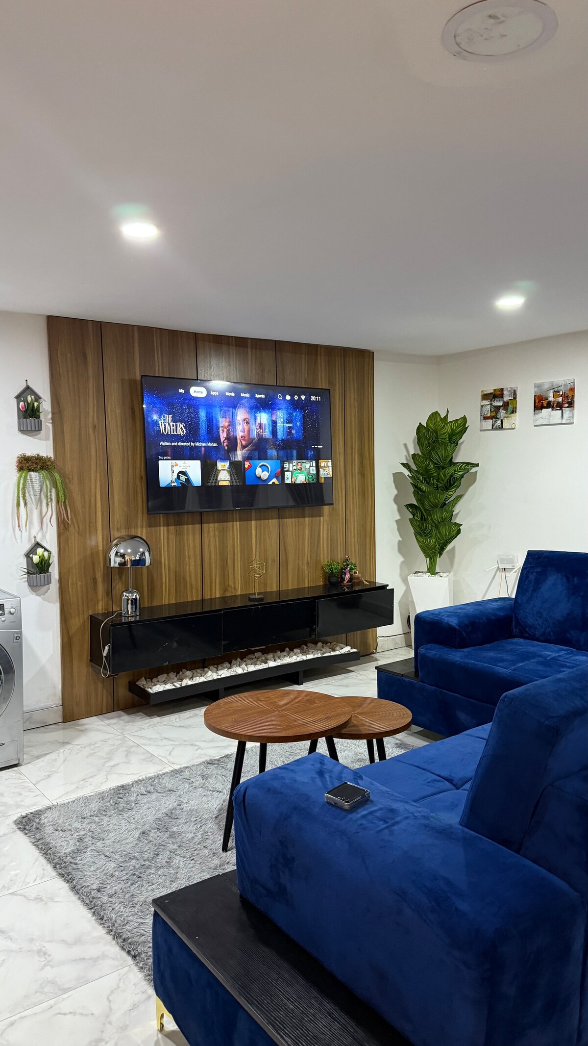 Te damos la bienvenida a Elmstead Luxury Aprt, tu elegante refugio en Lekki Ikota. Este refugio de 2 dormitorios y 2 baños ofrece comodidad de aire acondicionado, un televisor de 65 pulgadas en la sala de estar, televisor de 43 pulgadas en los dormitorios, WiFi ilimitado estable gratuito y energía las 24 horas, los 7 días de la semana con inversor y energía solar. Disfruta de la llegada autónoma con cerradura inteligente, estacionamiento gratuito, una lavadora en la vivienda y un castillo inflable para niños. 1 limpieza gratuita para estadías de más de 5-6 noches. Cerca del centro de conservación de Lekki, Mega Chicken, Blackbell y Blemco. Perfecto para viajeros solitarios, huéspedes de negocios, familias o estancias largas.