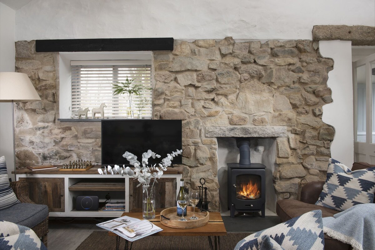 The Barn is a peaceful, romantic, rustic retreat deep in the heart of West Cornwall but, only 10 mins from Penzance & St Ives. Situated in a fantastic secret location for a holiday being a short distance from St Ives, Lands End, Penzance, St Michaels's Mount & the Lizard. The Barn is centrally heated with a log burner as well. Great carfree walks from the door. This stylish Barn is perfect for a couple or a small family. It has super comfortable beds. Superfast WIFI . Parking for 2 cars.