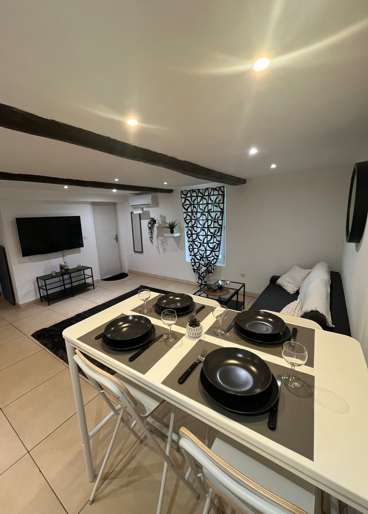Acomódate en nuestro espacioso departamento de 57 m², ubicado en el corazón de la ciudad medieval, en una zona totalmente peatonal. Aquí te esperan paz y autenticidad. - Dormitorio con una cama tamaño queen (160x200) y ropa de cama de alta calidad - Sala de estar luminosa con sofá cama (150x200) - Cocina totalmente equipada (estufa, horno, microondas, cafetera, hervidor...) - Wifi gratuito, televisión, secador de pelo, ventiladores. - Mosquiteros en las ventanas para mayor comodidad (sin aire acondicionado).