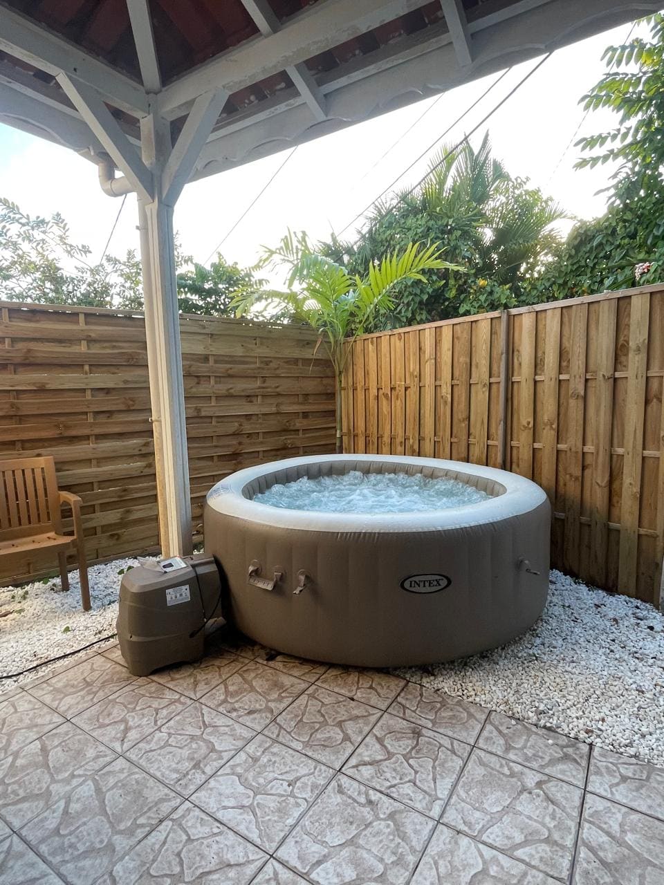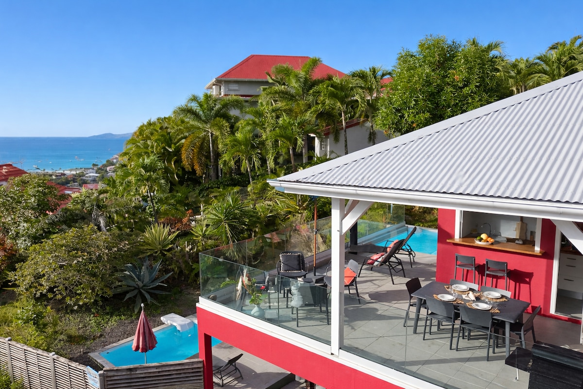 Tranquilo y romántico apartamento de 2 habitaciones de 105 m2, íntimo con su espacio privado «casa de la piscina», solo para ti con: spa, piscina, barbacoa, plancha, ping pong y zona de relax. Todo en un entorno verde con vistas panorámicas al mar Caribe, al monte Pelée y a la bahía de Fort de France. Hay restaurantes y tiendas a 2 minutos en coche de Bourg des Trois-Ilets y las playas más bonitas están a 10 minutos.: La mejor ubicación geográfica para visitar la isla. Estacionamiento cerrado. Internet de fibra.