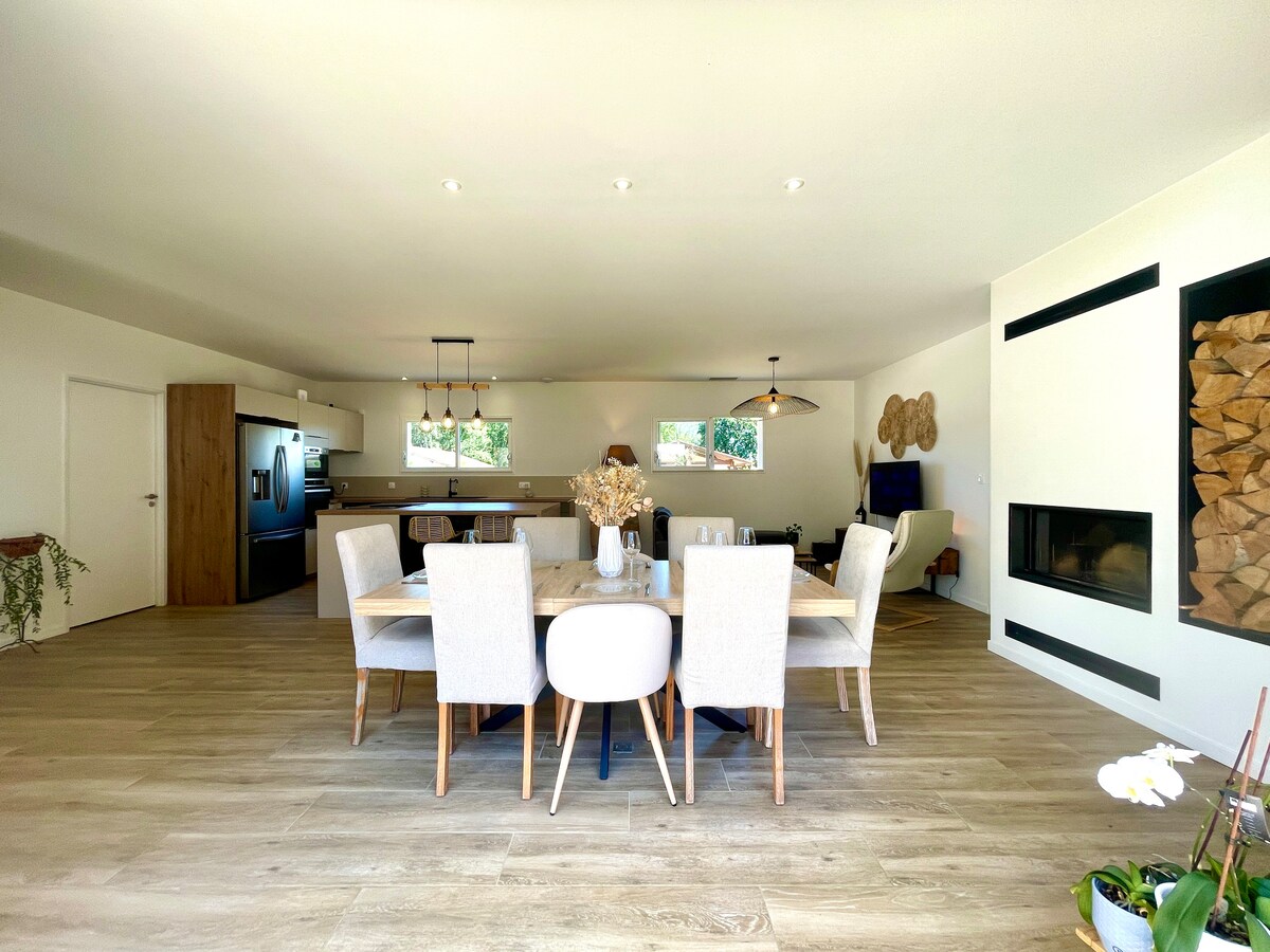Un verdadero nidito, en un espacio sin vecinos... La casa le dará la bienvenida con su jardín equipado con zonas de relax: «jacuzzi», comida con su barbacoa. En las inmediaciones se puede descubrir y disfrutar de la zona: playas, el mar están a 20/30 minutos de la casa y el río, así como el Médoc y la ciudad de Burdeos y sus muelles a 45 minutos/1 hora. ¡No espere más, reserve! ¡Venga a disfrutar de nuestra preciosa región! Atención: ¡el spa estará en funcionamiento del 1 de abril al 15 de octubre!
