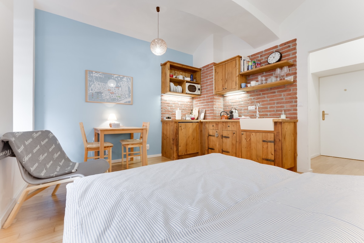 Disfruta de nuestro acogedor y nuevo apartamento cerca del castillo de Praga y del centro de la ciudad. Encantador edificio histórico, recién reconstruido y recién amueblado. Nuestro apartamento de concepto abierto de un dormitorio es ideal para una pareja. ¡Gran vecindario, con un verdadero ambiente bohemio! Estamos a poca distancia de la mayoría de las principales atracciones de Praga. Relájate con una bebida en el balcón o visita una de las muchas cafeterías o restaurantes locales.