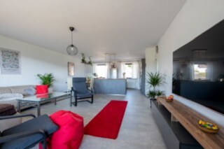 You can't get closer to the Moselle! Renovated apartment in the heart of the Middle Moselle. On the large terrace, the Moselle is within arm's reach and thus almost unique. The apartment has a fully equipped kitchen with a dishwasher, microwave, coffee machine, oven, and more. Private high-speed internet, a television with streaming services, are available. In addition to the shower, the bathroom also features a bathtub. You can enjoy the view of the Moselle from the box spring bed.