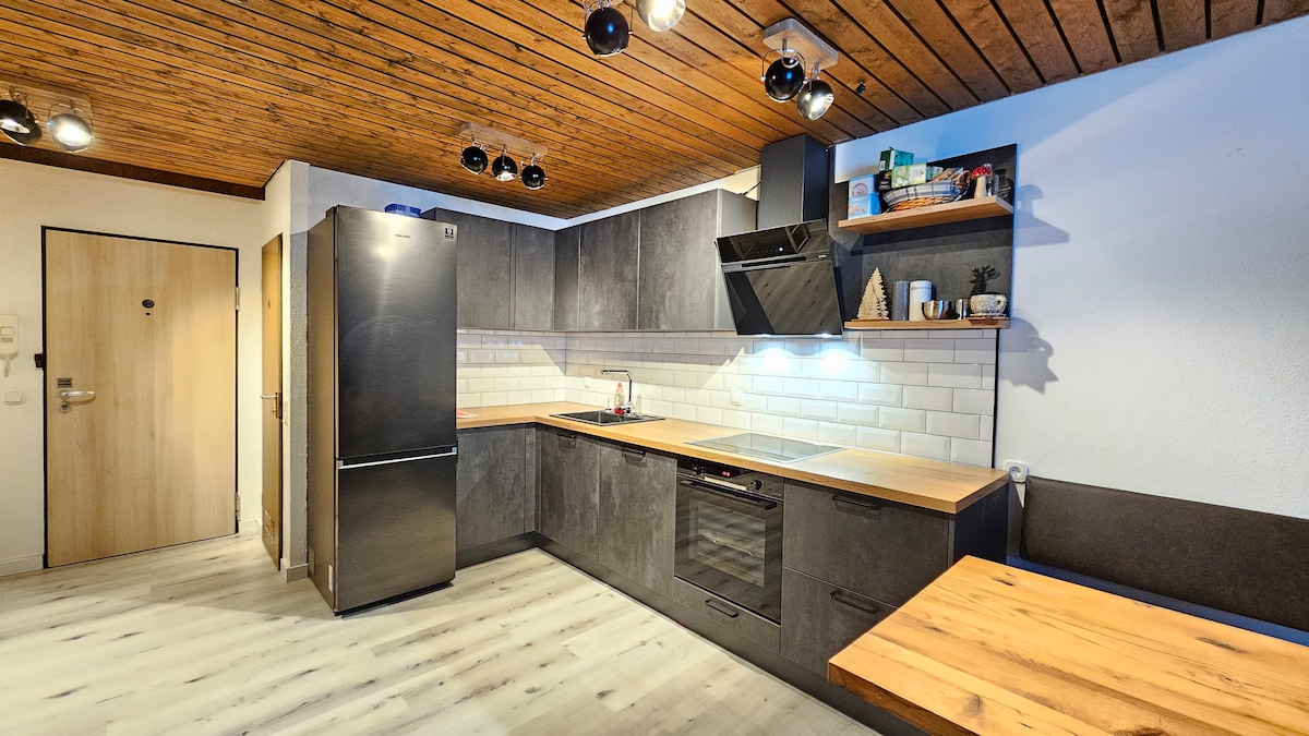 A 1000 metros de altura, te damos la bienvenida con unas vistas impresionantes de Schonach y el Bosque Negro. Relájate en un apartamento completamente renovado en 2023 con instalaciones de última generación y mucha atención al detalle. Ya sea un árbol real en la sala de estar, una manta de flores sobre la cama, paredes de entramado de madera, una ducha de efecto lluvia en el bosque o un lavabo de piedra real: gracias a muchos detalles de alta calidad, los amantes del diseño no se quedan cortos. Situado justo al borde del bosque, el Fabelwald es perfecto para los amantes de la naturaleza.
