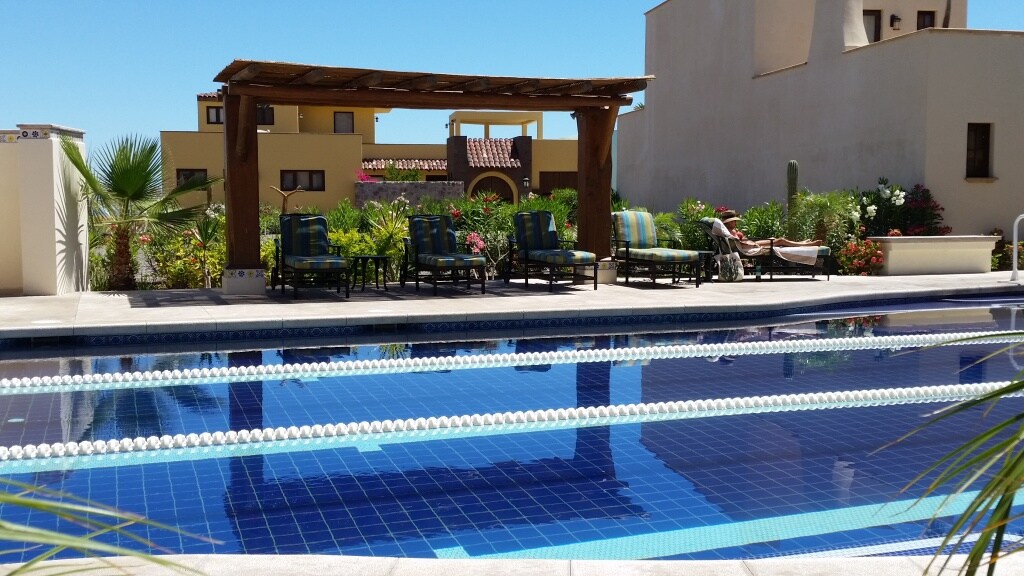 A pocos pasos del mar de Cortés, esta casa de dos dormitorios y dos baños está en una comunidad encantadora y pintoresca. La casa está frente a una de las piscinas comunitarias y está a poca distancia a pie del golf y de la playa. La casa cuenta con un patio privado, un dormitorio principal grande con cama tamaño king, un segundo dormitorio con dos camas individuales, dos baños completos con bañera hundida y ducha a ras de suelo, una cocina bien equipada, lavadora/secadora y muchas otras comodidades. L' alojamiento está totalmente amueblado, incluidos los artículos para el hogar.