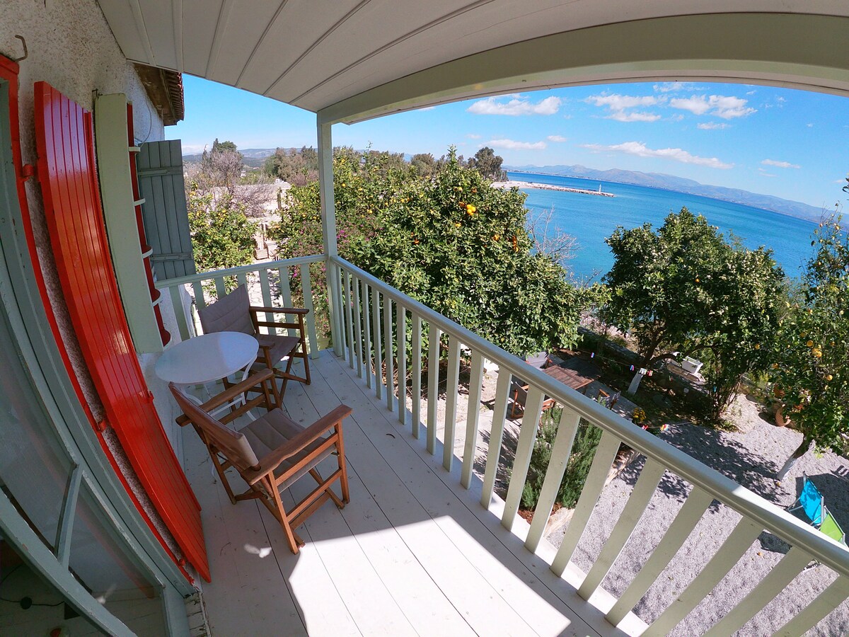 Esta casa familiar con carácter, construida por primera vez en 1876 y renovada en 1973, tiene unas impresionantes vistas de 180° de la bahía de Argolikos desde la espaciosa terraza y su encantador jardín de naranjos y limoneros, y está a solo 10 metros del mar y a 150 metros de las dos playas del pueblo y el puerto pesquero. Disfrutará de todo el encanto de una casa de pueblo griega tradicional con muchos muebles antiguos, mientras que todas las comodidades modernas básicas están disponibles.