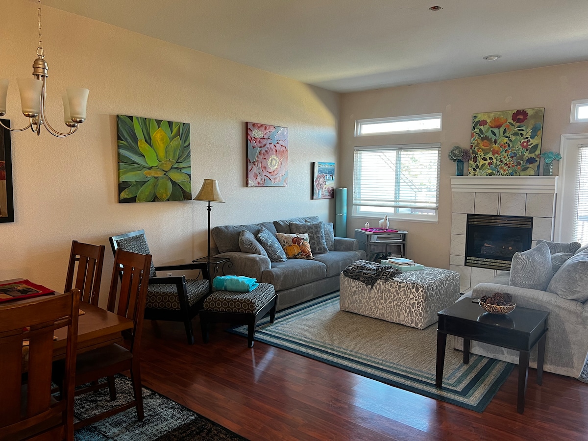 Apartamento estudio de 350 pies cuadrados en la parte trasera de una casa privada. Entrada privada. Paredes compartidas con el alojamiento. La entrada está debajo de una gran terraza superior. La unidad exterior del patio está reservada para el uso de los huéspedes y proporciona espacio adicional para relajarse con una parrilla de gas y una chimenea. Cocina equipada con microondas, horno tostador, licuadora, tostadora, placa calefactora, ollas y sartenes, cafetera de 12 tazas, platos, etc. Baño privado con spa como ducha, lavadora y secadora en el alojamiento.
