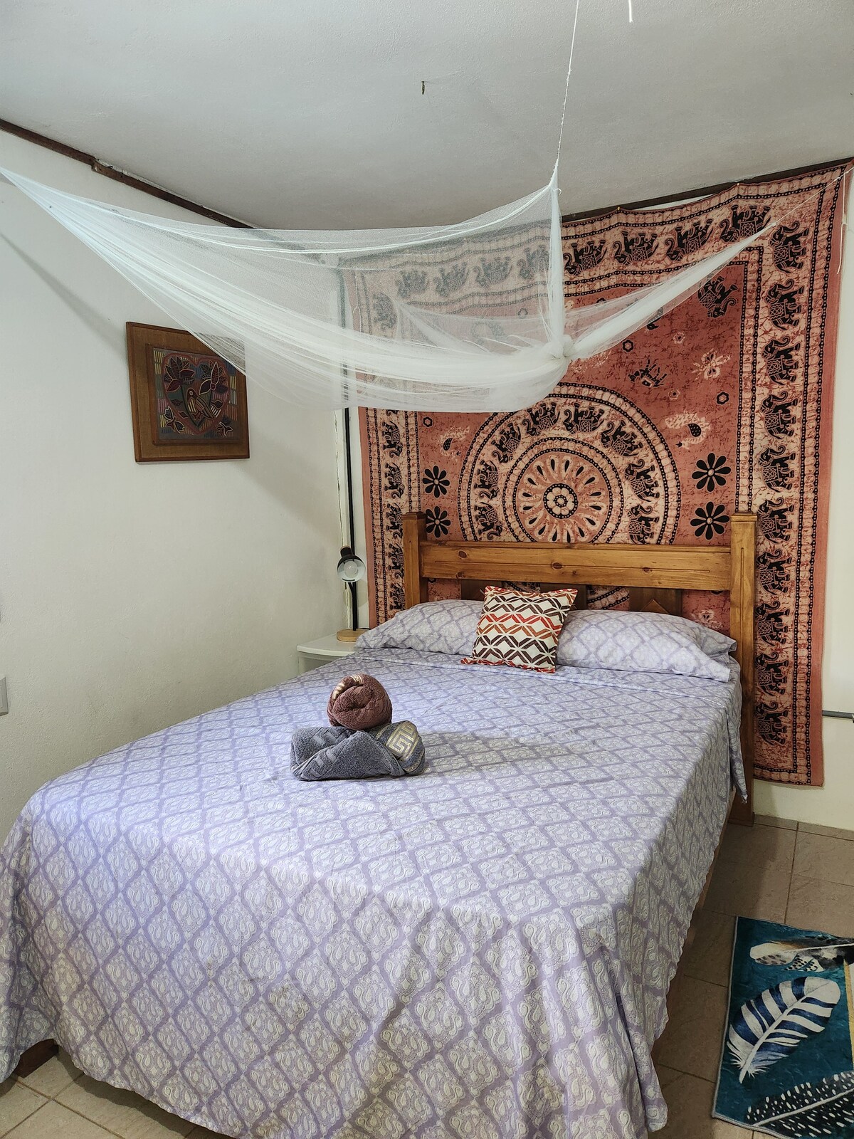 Será un placer volver a casa después de un día de playa a este tranquilo y espacioso apartamento. Te encantará despertarte con el sonido de los monos aulladores y los pájaros. Disfruta de un café en el porche delantero mientras contemplas los hermosos jardines. Es posible que veas un grupo de monos aulladores o capuchinos, o tal vez incluso un perezoso. A menudo se puede escuchar el sonido del océano. Tenemos docenas de árboles frutales y una bandada de patos que deambulan por la propiedad. Si lo deseas, estaremos encantados de ofrecerte un recorrido por nuestra pequeña granja.