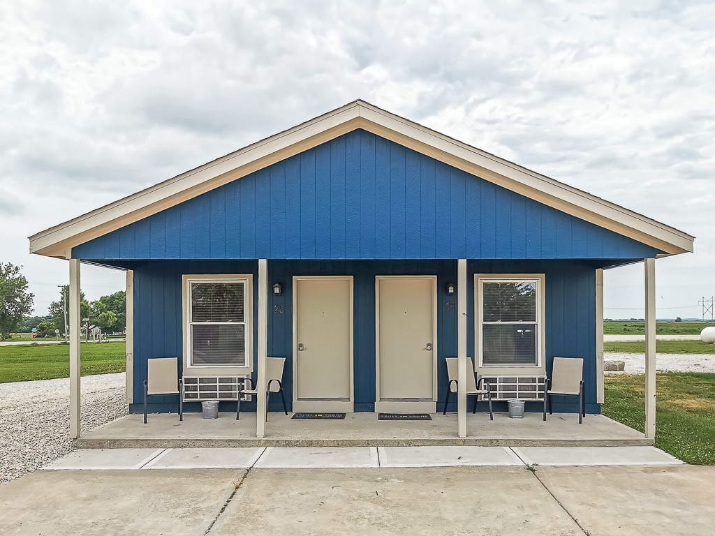 Doug and Becky We offer cabins off of 69 highway in Pleasanton, KS, near 2 lakes! We offer nightly, weekly, and monthly rentals. Each cabin is approx 250 Sq ft. Includes TV, Satellite TV, Gigabit Internet, full bath, kitchenette, grill including propane and utensils, (upon request), and a Porch with chairs and table. Community fire pit and picnic tables available. We have both a coffee maker that uses a filter and grounds, and a Keurig for your K-cups. Bring your favorite coffee! Pet Friendly!