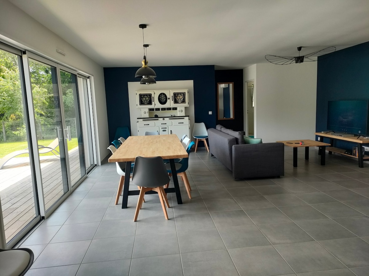 Très belle villa comtemporaine décoré avec un mobilier de qualité proche d'un bourg animé avec tous commerces, restaurant, location de vélo et marchés local, a 8 km de la plage du cap de l'homy très belle plage pour toute la famille et surfer, accessible par piste cyclable. Maison tout confort, barbecue gaz, piscine chauffée du 20 mai au 15 septembre, salon de jardin, transat, 3 vélos adultes à disposition gratuitement.