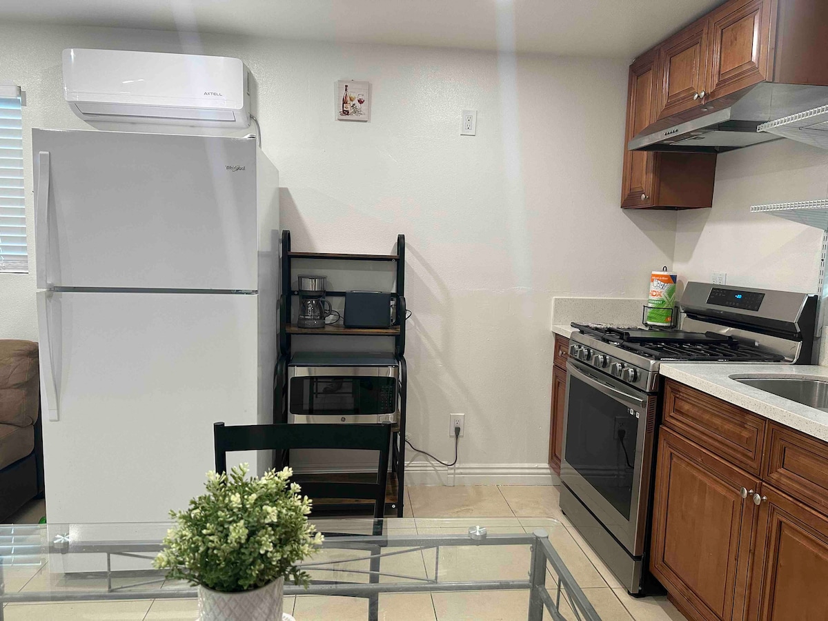 Bienvenido a nuestro encantador estudio ubicado en el corazón de Midway City. Perfectamente diseñado para la comodidad y la conveniencia, este elegante refugio ofrece todo lo necesario para una estancia inolvidable. Entra en un espacio acogedor y meticulosamente cuidado, donde los servicios modernos se combinan con toques reflexivos. El estudio cuenta con una cómoda cama tamaño queen. La cocina compacta pero bien equipada te invita a preparar tus comidas favoritas, con un comedor para disfrutarlas con estilo.