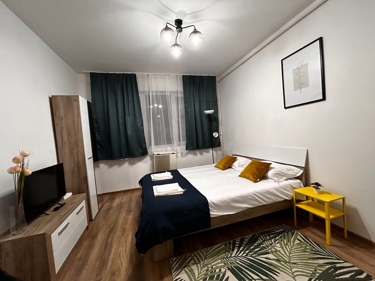 ¿Buscas un lugar para relajarte y disfrutar en Targu Mures? ¡Estás de suerte! CONSULTA TAMBIÉN NUESTROS OTROS APARTAMENTOS SI LAS FECHAS NO ESTÁN DISPONIBLES PARA ESTE Nuestro cómodo, tranquilo, seguro y acogedor apartamento te espera. Zona de reciente desarrollo, junto a la naturaleza, a 15 minutos a pie del centro comercial y otras instalaciones, y si vas en coche o taxi, el centro y la fortaleza están a 10 minutos. Para aquellos que vienen para un tratamiento médico, estamos muy cerca (a 3 minutos en coche) de la Clínica Hyperbar.