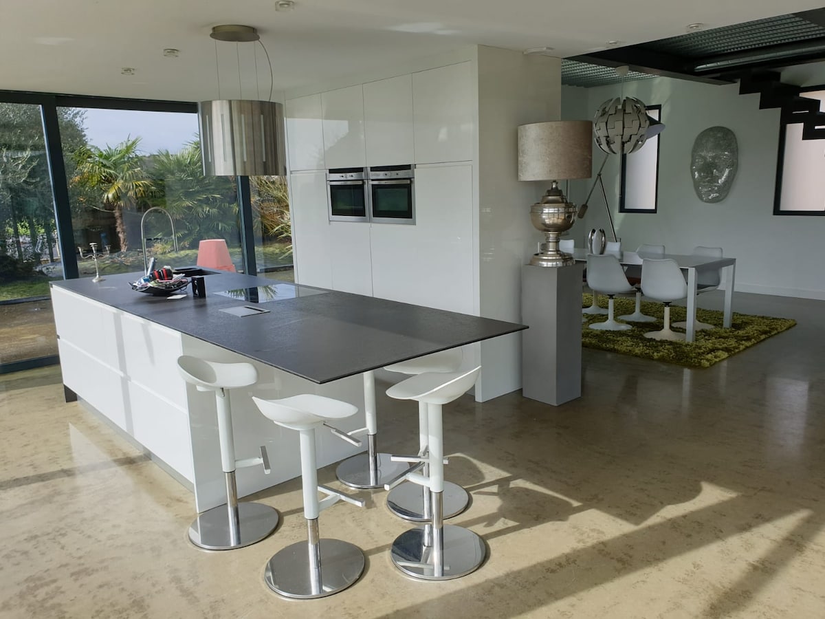 Esta casa de campo de lujo de 240 m2 está ubicada en la planta baja de una gran villa construida en 1976, antigua propiedad de un rico industrial de los «treinta gloriosos». Renovado conservando la identidad hedonista del lugar, el espacio se articula en torno a una sala de 140 m² donde podrá nadar, almorzar, relajarse o escuchar música, y un gran salón de 40 m² con billar, TV de 2 m de diagonal, canal+... casco virtual, videoteca, biblioteca. Tenis accesible en todo momento.